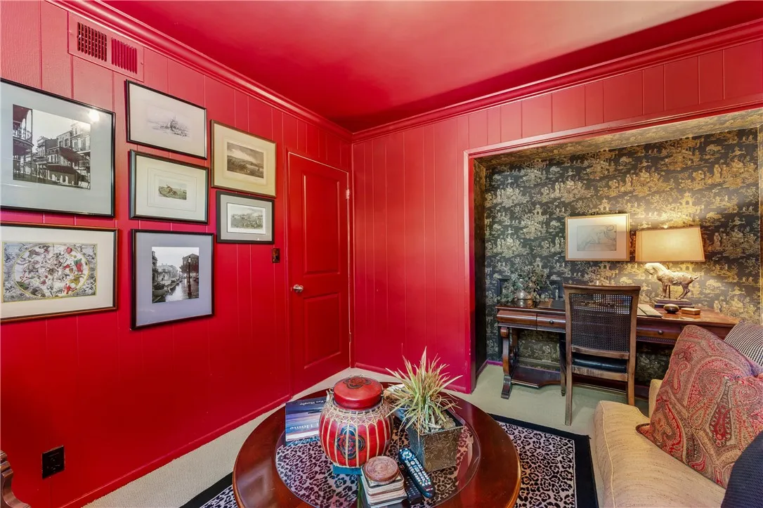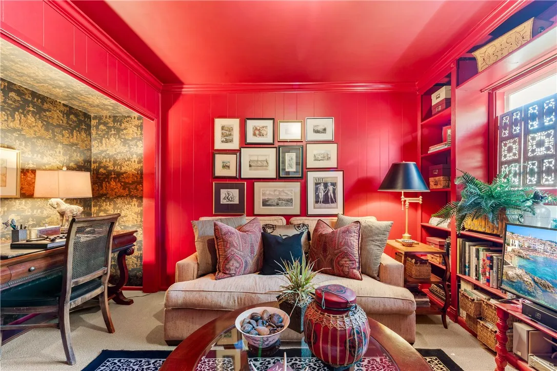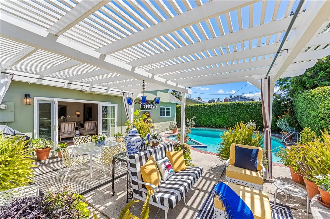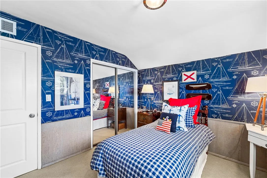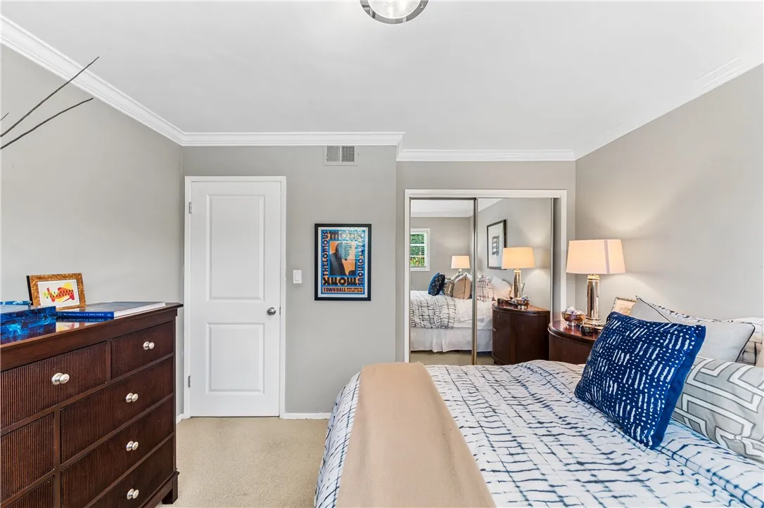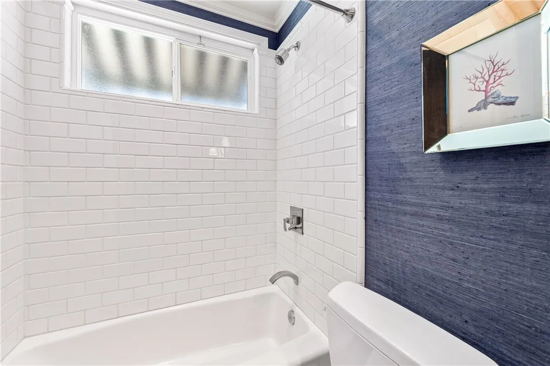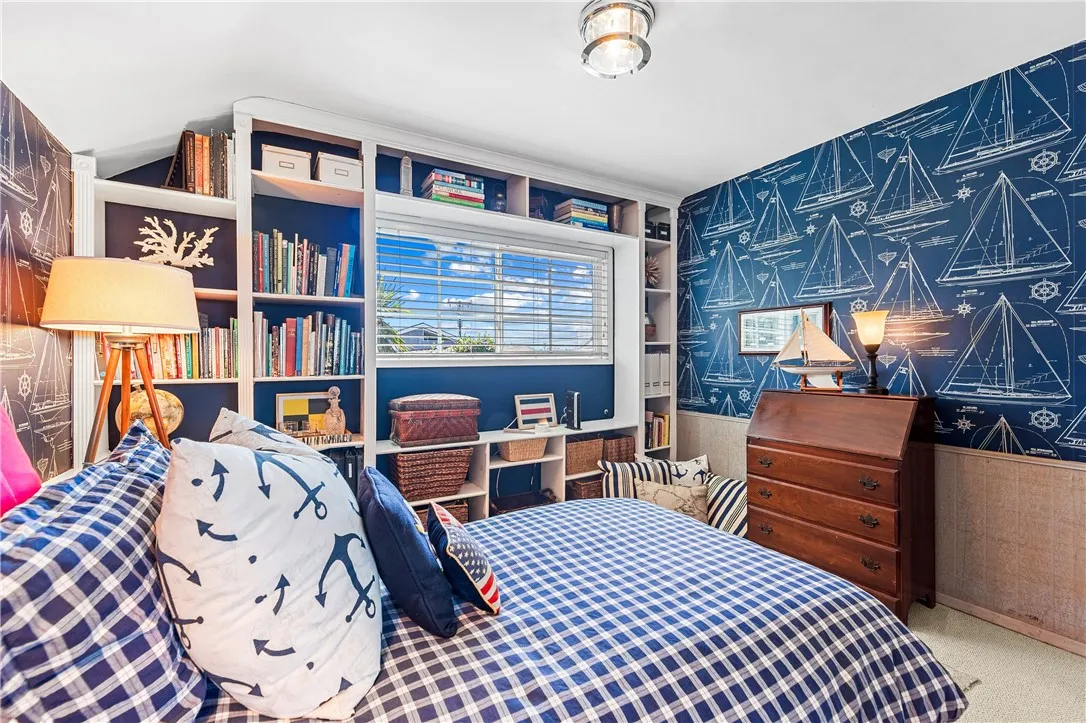 Tucked along a picturesque tree lined street in the heart of West Garden Grove, this exceptional Garden Park Plan 8, built by S&S Construction offers a rare opportunity to own one of the largest and most coveted floorplans in the neighborhood. Perfectly positioned directly across from Edgar Park, this 5 bedroom, 2 bathroom residence blends timeless character with elevated design, creating a true showpiece that checks all the boxes. Lovingly maintained by the original family since 1963, the home showcases craftsmanship rarely found today, including classic lathe and plaster construction. From the moment you step inside, Saltillo tile floors set a warm, inviting tone, flowing throughout the main living spaces and into the downstairs bedrooms. The reimagined guest bathroom is a designer moment, featuring a Kohler Village tub, white subway tile surround, Carrera marble vanity, and seagrass wall coverings. The interior has been elevated with smooth ceilings, recessed lighting, and crown molding, while dual-pane Simonton windows fill the home with natural light. At the heart of the home, the kitchen is both functional and refined, appointed with shaker cabinetry, pull-out shelving, spice racks, and stainless steel Jenn-Air appliances, including a 6-burner range. Designed with a curated aesthetic, this Acadian inspired residence features Ralph Lauren finishes, evoking the feeling of stepping into a Ballard Designs catalog. Upstairs, the primary suite is a true retreat, offering serene park views, a fireplace, and a walk-in closet. The spa-like bathroom is finished with Calcutta ma