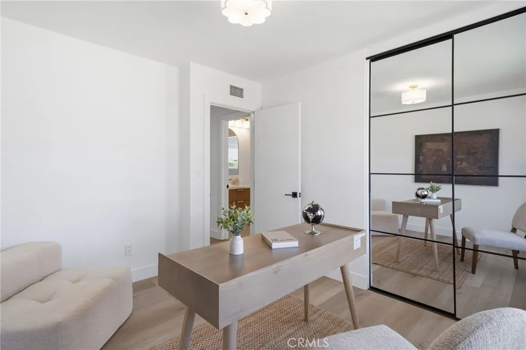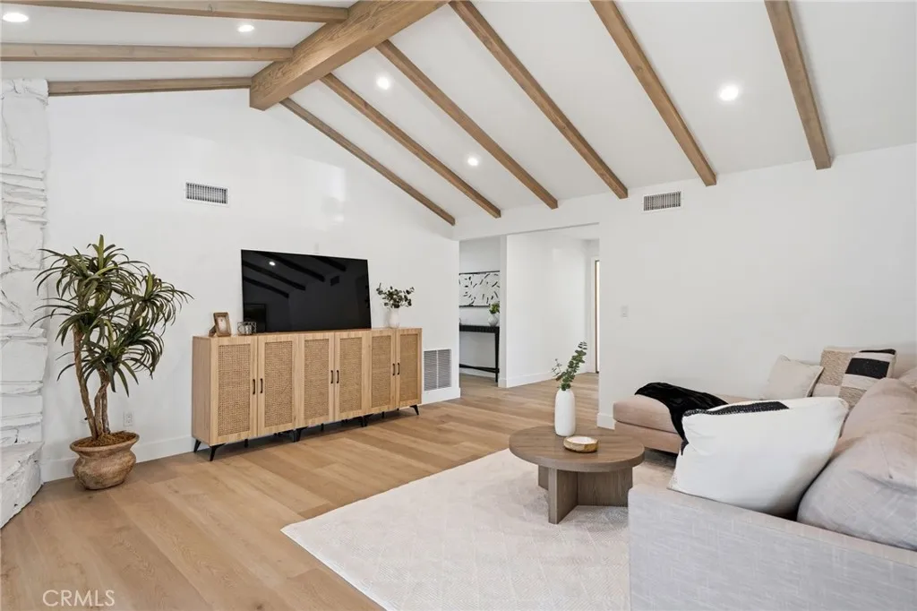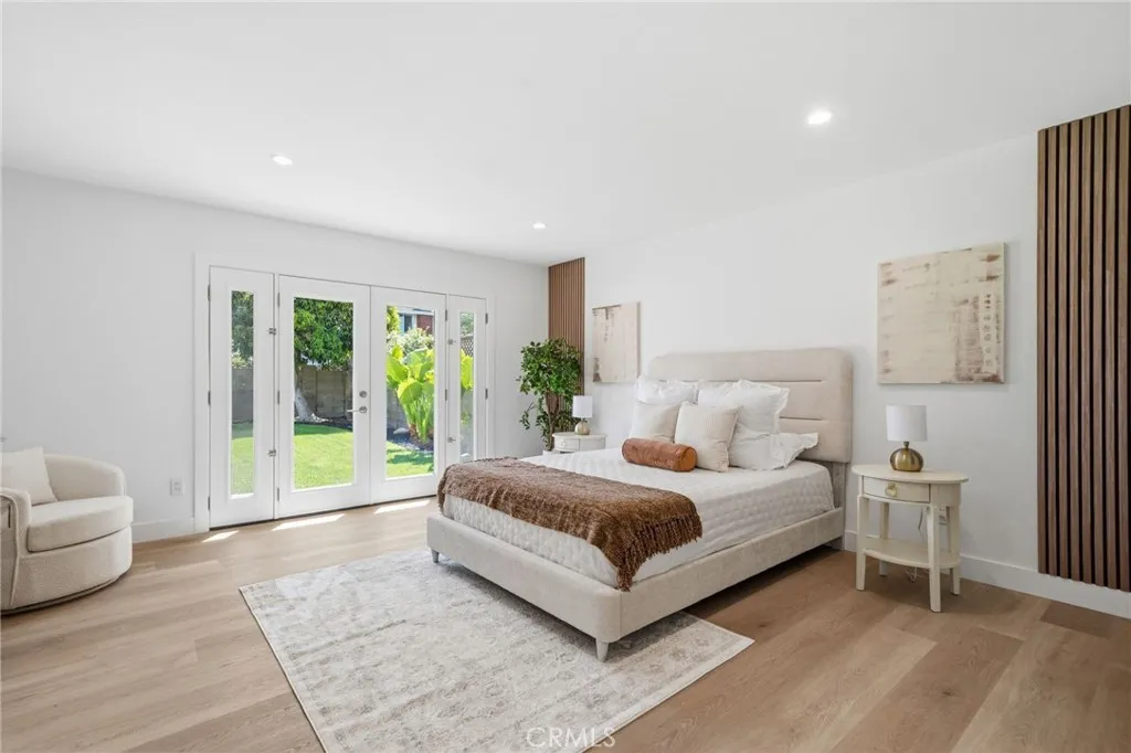 Meticulously remodeled and truly turnkey, this exceptional 4-bedroom, 2.5-bath single-level residence is gracefully positioned on a coveted corner cul-de-sac lot within Oranges established Fairmont neighborhood. Thoughtfully reimagined with a refined, modern sensibility, the home blends timeless design with elevated comfort, offering a step-free interior, a custom soft contemporary entry door, and an airy open-concept floor plan tailored for both everyday living and effortless entertaining. The designer kitchen serves as the showpiece of the home, appointed with custom Slim Shaker oak cabinetry, striking Calacatta Bella quartz countertops, a generous center island with seating, farmhouse sink, and stainless steel appliances. Wide-plank luxury vinyl flooring flows throughout, complemented by porcelain tile baths, curated finishes, and sophisticated layered lighting that enhance the homes polished aesthetic. Privately situated, the primary suite is a serene retreat filled with natural light and enhanced by a custom walk-in closet, architectural ceiling detail, and French doors that open to the backyard for a seamless indoor-outdoor connection. The spa-inspired primary bath evokes a boutique resort feel with dual vanities, designer fixtures, a freestanding soaking tub, and an expansive glass-enclosed shower finished with custom tile and multiple shower heads. Secondary bedrooms are generously proportioned and thoughtfully designed, offering flexibility for guests, office space, or creative use. One enjoys direct access to a beautifully remodeled hall bath, while another is cur