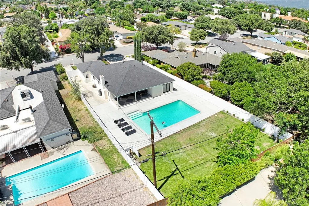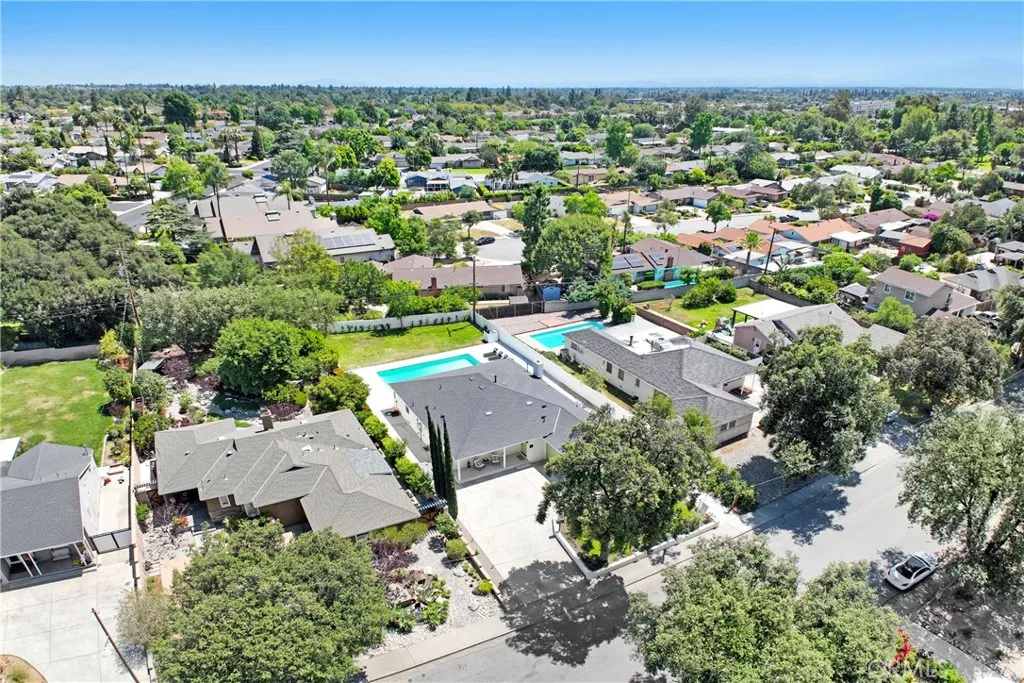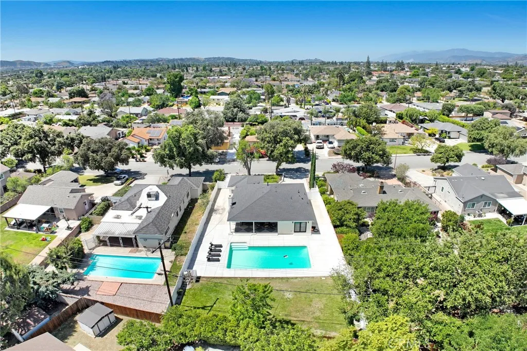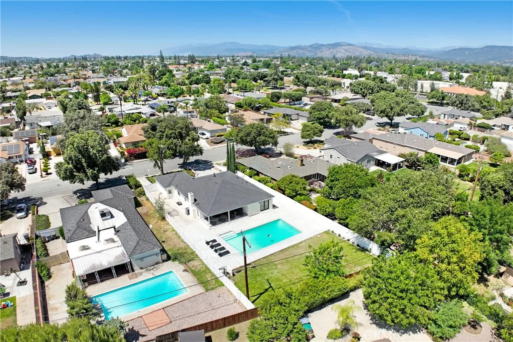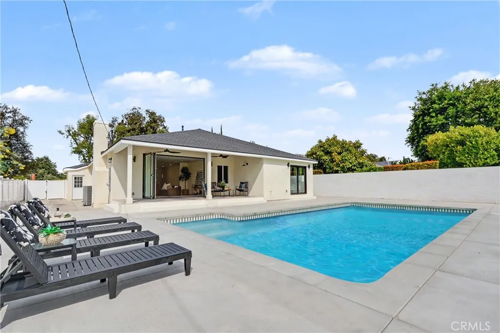 Welcome to one of Claremonts most desirable neighborhoods, just moments from the historic Village. Known for its tree-lined streets, charming character homes, and City of Trees and PhDs reputation, this area offers a perfect blend of small-town charm, cultural richness, and everyday convenience. Beyond the generous driveway and welcoming entry, the residence unfolds into a thoughtfully designed interior that balances style and comfort. The foyer opens to a bright, airy kitchen and dining areaan epicureans dreamfeaturing high-end yet durable finishes ideal for both entertaining and everyday living. A cozy sitting room connects this space to the outdoors, where floor-to-ceiling glass doors open fully to create a seamless transition to a shaded terrace, perfect for year-round lounging and entertaining. Beyond, the terrace overlooks an expansive pool framed by a lush lawn and vibrant landscaping, offering a serene and private backyard retreat. The primary suite is tucked into a tranquil corner of the home, complete with a walk-in closet, spa-inspired ensuite bath with brass fixtures, a freestanding soaking tub, and French doors that provide direct access to the pool. Additional features include three well-appointed bedrooms and two bathrooms, a conveniently located laundry room adjacent to the kitchen, and a two-car garage. A thoughtful design detail: the guest bathroom is discreetly hidden behind a paneled wall in the foyer. This home is located just moments from boutique shopping, dining, neighborhood parks, and the renowned Claremont Colleges, with convenient access to local