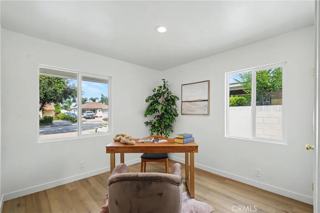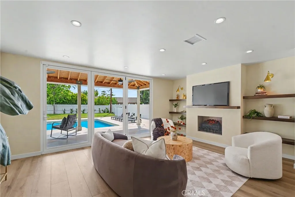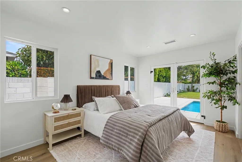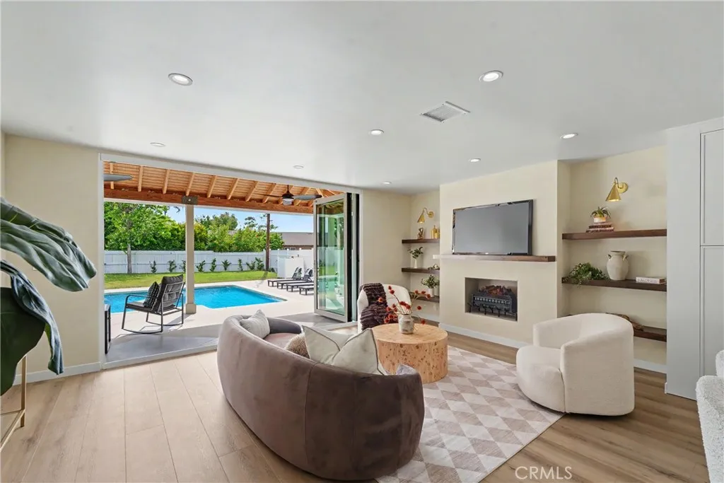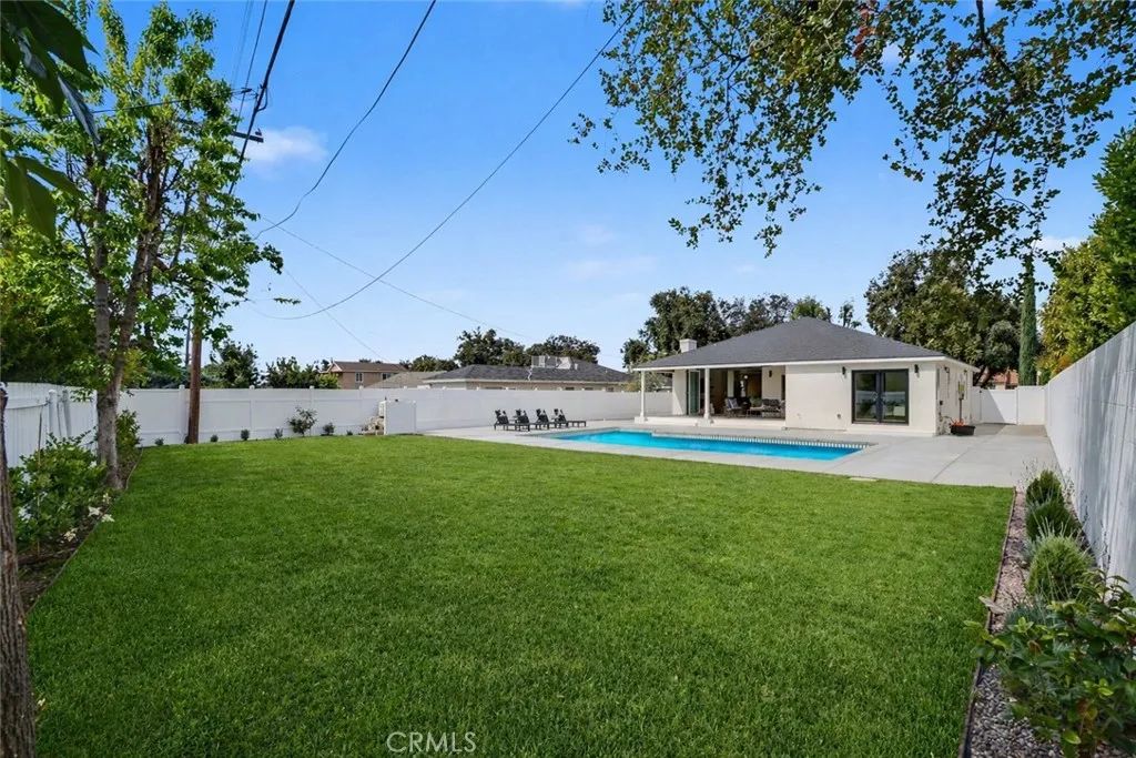 Welcome to one of Claremonts most desirable neighborhoods, just moments from the historic Village. Known for its tree-lined streets, charming character homes, and City of Trees and PhDs reputation, this area offers a perfect blend of small-town charm, cultural richness, and everyday convenience. Beyond the generous driveway and welcoming entry, the residence unfolds into a thoughtfully designed interior that balances style and comfort. The foyer opens to a bright, airy kitchen and dining areaan epicureans dreamfeaturing high-end yet durable finishes ideal for both entertaining and everyday living. A cozy sitting room connects this space to the outdoors, where floor-to-ceiling glass doors open fully to create a seamless transition to a shaded terrace, perfect for year-round lounging and entertaining. Beyond, the terrace overlooks an expansive pool framed by a lush lawn and vibrant landscaping, offering a serene and private backyard retreat. The primary suite is tucked into a tranquil corner of the home, complete with a walk-in closet, spa-inspired ensuite bath with brass fixtures, a freestanding soaking tub, and French doors that provide direct access to the pool. Additional features include three well-appointed bedrooms and two bathrooms, a conveniently located laundry room adjacent to the kitchen, and a two-car garage. A thoughtful design detail: the guest bathroom is discreetly hidden behind a paneled wall in the foyer. This home is located just moments from boutique shopping, dining, neighborhood parks, and the renowned Claremont Colleges, with convenient access to local