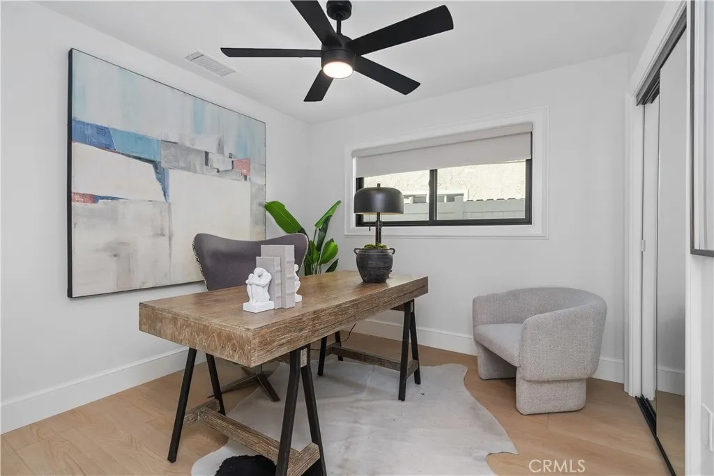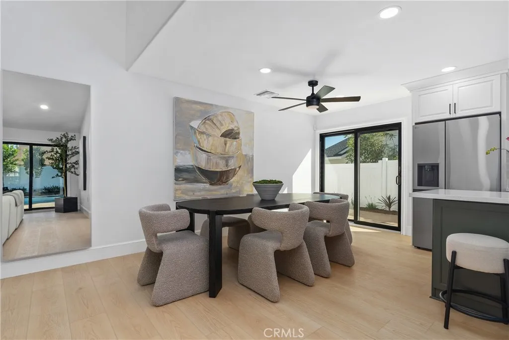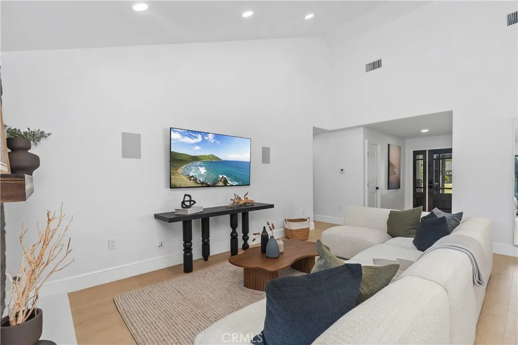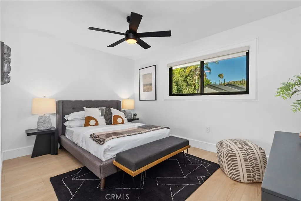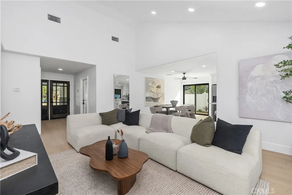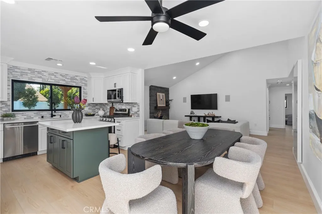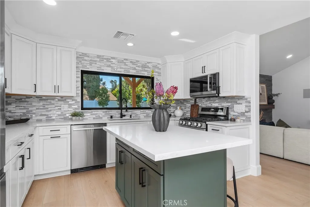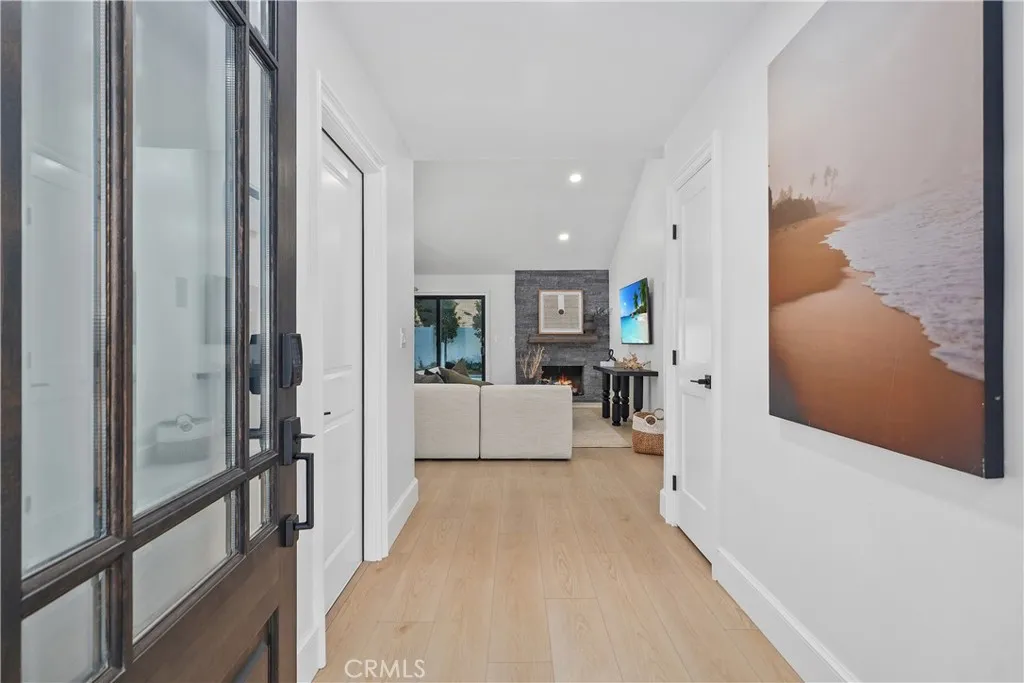 Step into this beautifully reimagined single-level home where style, comfort, and function come together effortlessly. This four-bedroom, two-bath residence welcomes you with warmth and a refined sense of living. The expansive great room features vaulted ceilings, a cozy gas fireplace, and a built-in 60-inch television with soundideal for both relaxing and entertaining. The fully remodeled kitchen stands out with brand-new cabinetry, soft-close doors and drawers, a generous chefs island, and a complete suite of LG appliances, including a natural gas oven and range, refrigerator, dishwasher, and microwave. Enjoy seamless indoor-outdoor living in a backyard designed for both leisure and entertaining. The sparkling pool has been fully updated with new plaster, coping, heater, and a saltwater filtration system. The built-in barbecue center includes a new gas grill, refrigerator, and ample space for gathering. The expansive yard offers a large patio shaded by a pergola, fresh landscaping, and a fully upgraded irrigation systemall enclosed by new fencing for added privacy. The primary suite provides direct pool access and a spa-inspired bathroom featuring a luxurious walk-in shower with multiple showerheads. Extensive upgrades throughout the home include new electrical wiring, plumbing, a tankless water heater, heat pump HVAC system, windows, doors, flooring, casements and moldings, built-ins and LED lighting. A dedicated electronics hub supports modern living with STARLINK internet, whole-home Wi-Fi, a Control4 home automation system, and CAT6 wiring in every room. The finished