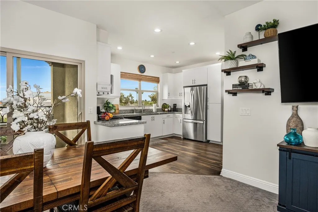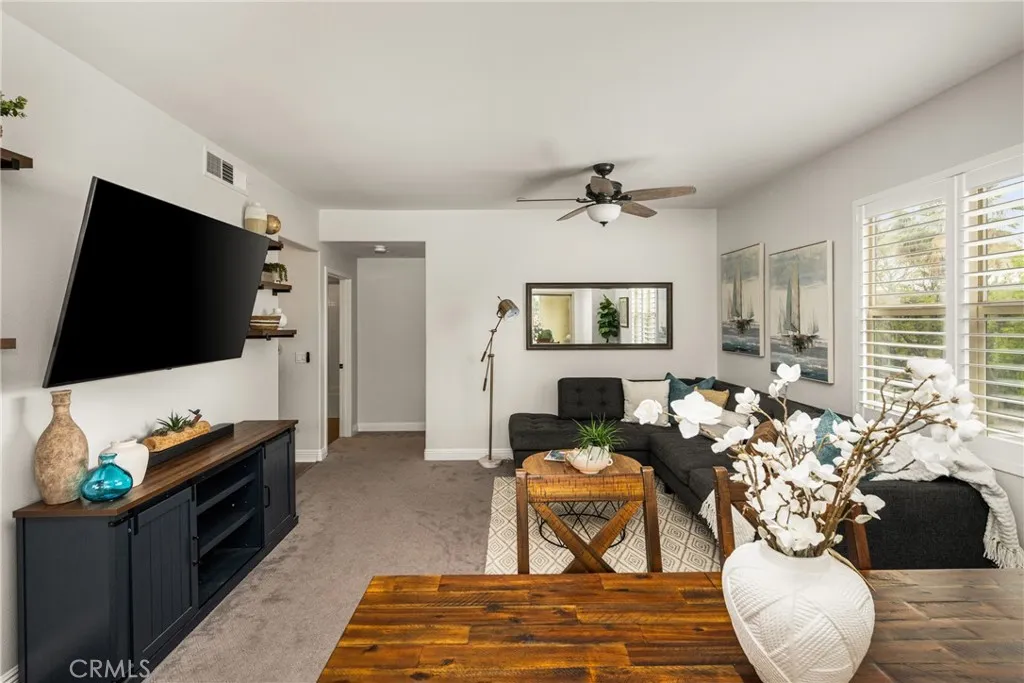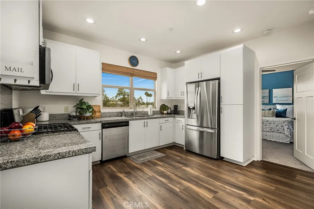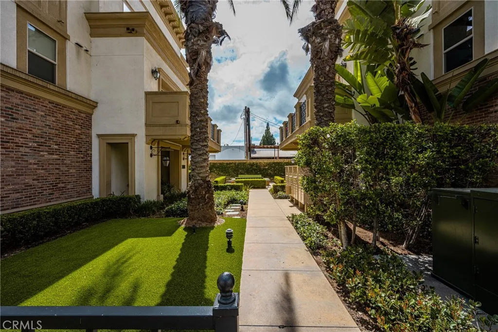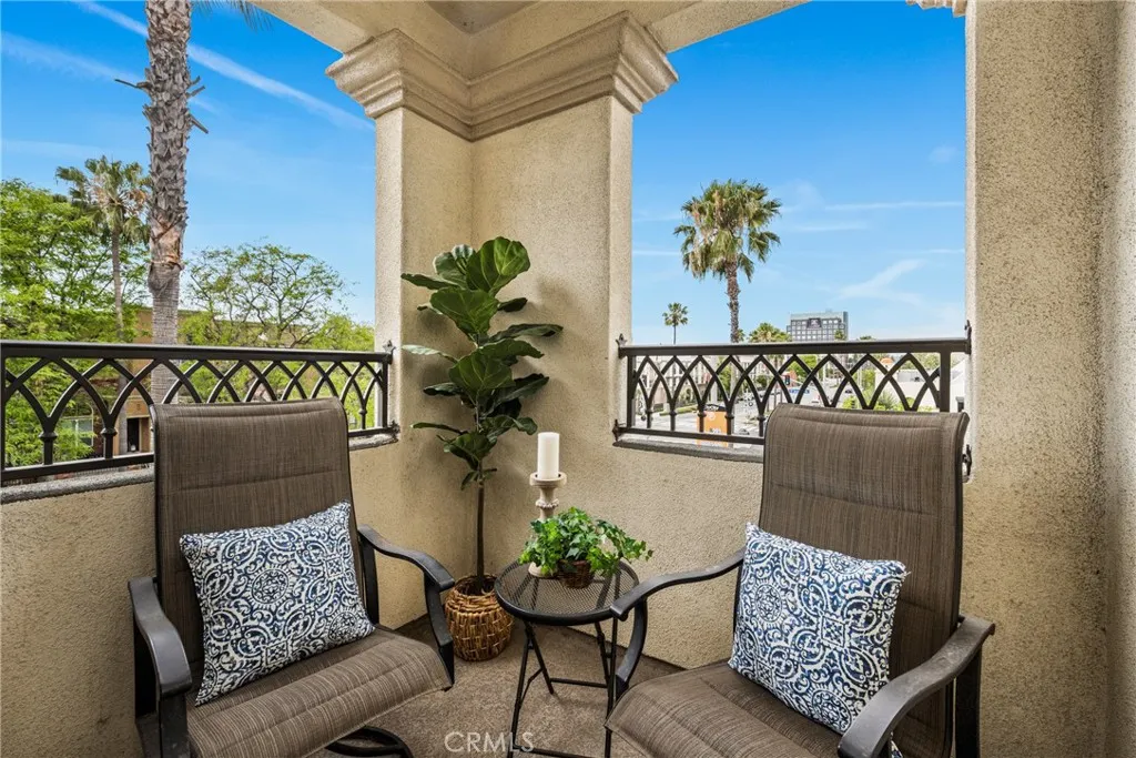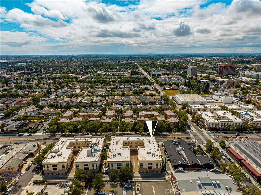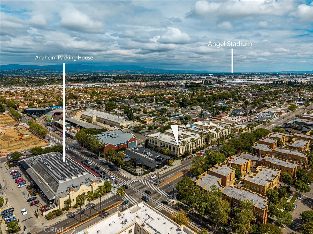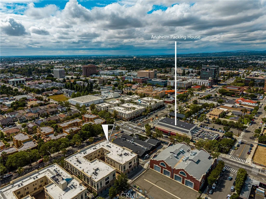Experience the best of urban living in this stunning 2 bed/2 bath 1085 sq ft condo located in the Domain community. Ideally situated near the vibrant Anaheim Packing District, dining, shopping and entertainment, this home offers unbeatable walkability and access to everything downtown Anaheim has to offer. Built in 2015, this light-filled single-story layout offers modern finishes with an open concept. This is perfect for first time buyers or those looking to downsize. There is a blend of convenience, style and city energy with no steps and elevator access. Enter inside to a bright and airy floorplan perfect for relaxing while enjoying city light and neighborhood views. The kitchen is open and boasts white cabinetry, granite countertops with stainless appliances-including washer/dryer. The large primary bedroom includes an oversized walk-in closet, dual sinks and walk-in shower. The secondary bedroom is perfect for guests, a home office or additional living space and includes walk-in closet. Wood shutters throughout, new A/C condenser-complete with Nest thermostat. HOA offers 2 rooftop terraces, sparkling pool, outdoor fireplaces, Firepit, and BBQ areas. Designed with pet lovers in mind, featuring dog-friendly areas for convenient outings. Easy access to freeways, entertainment and major attractions including Disneyland and Angel Stadium.