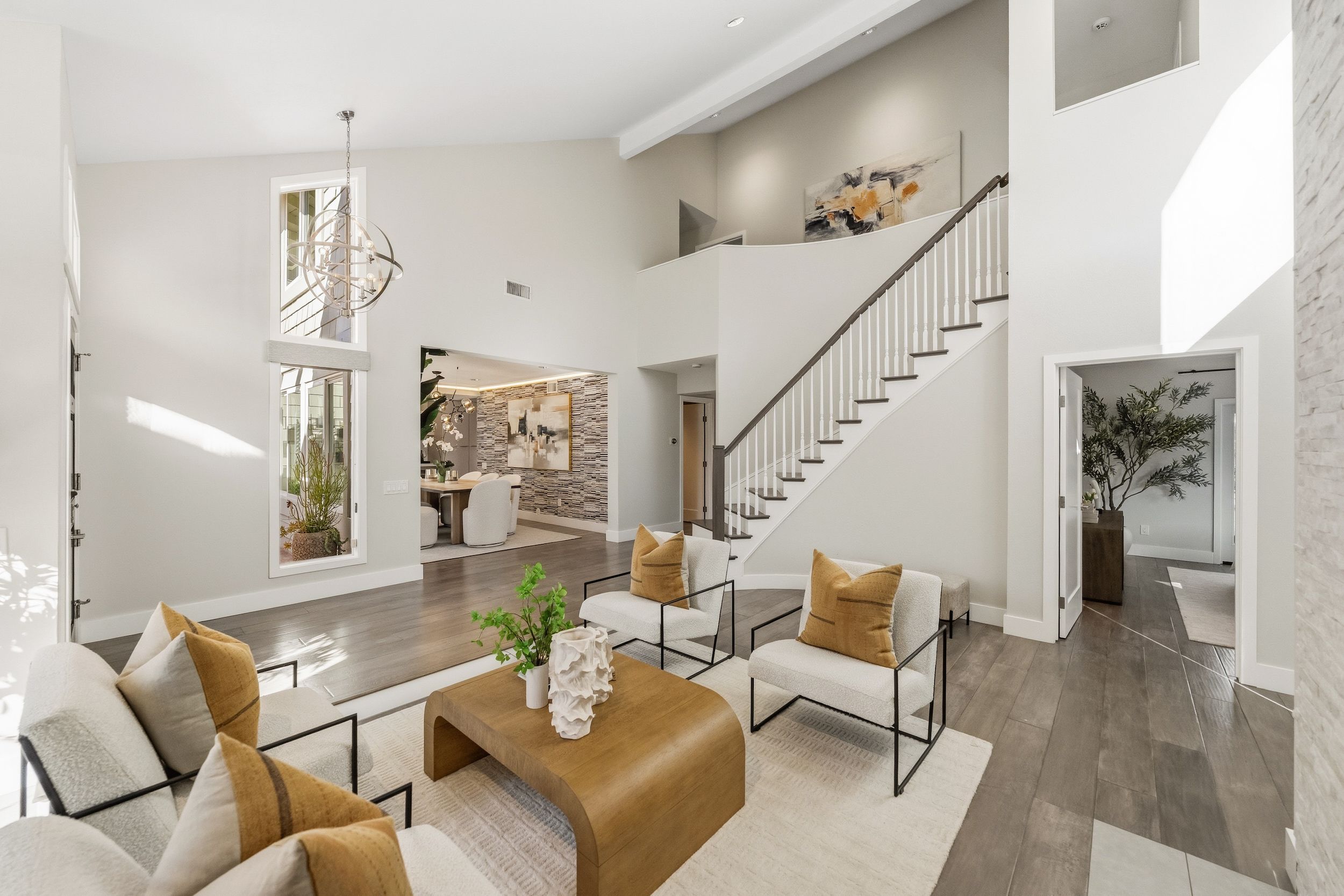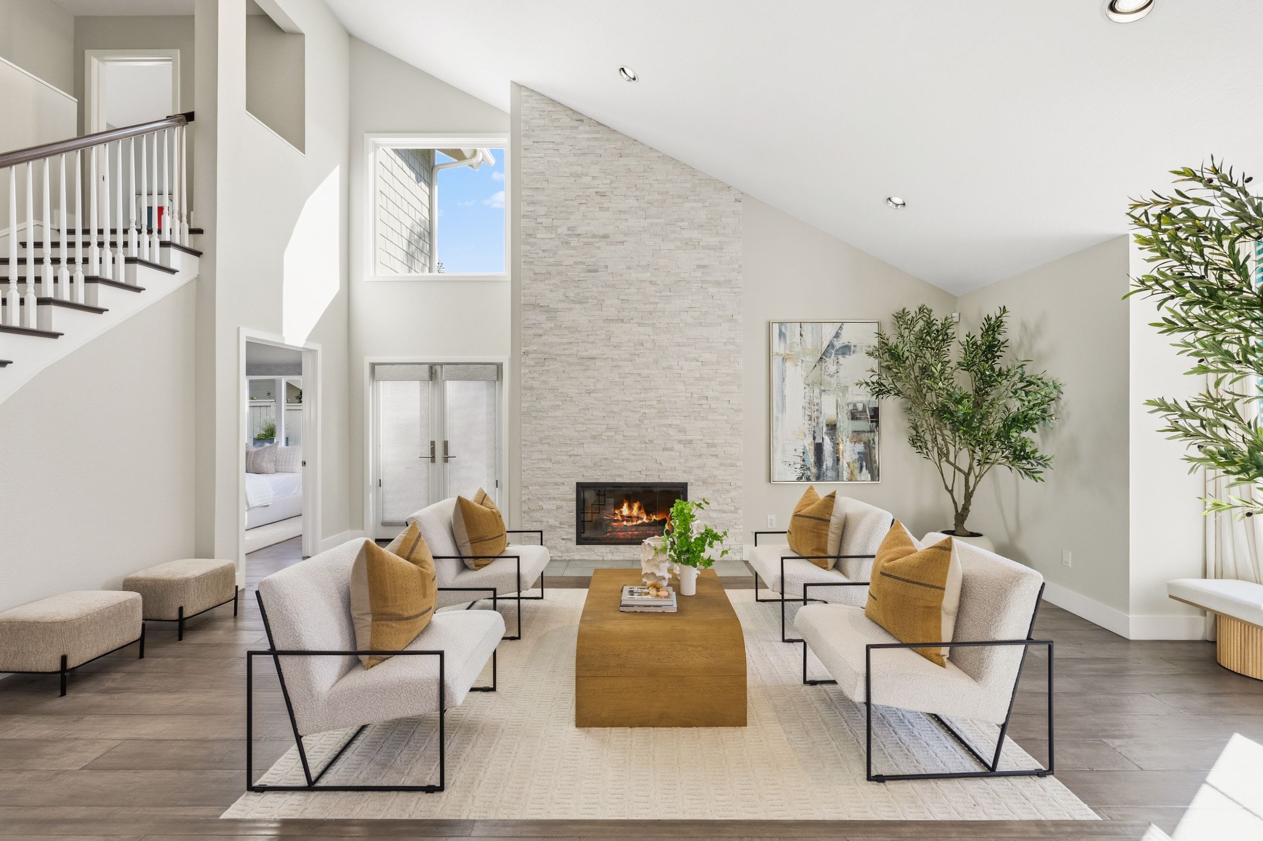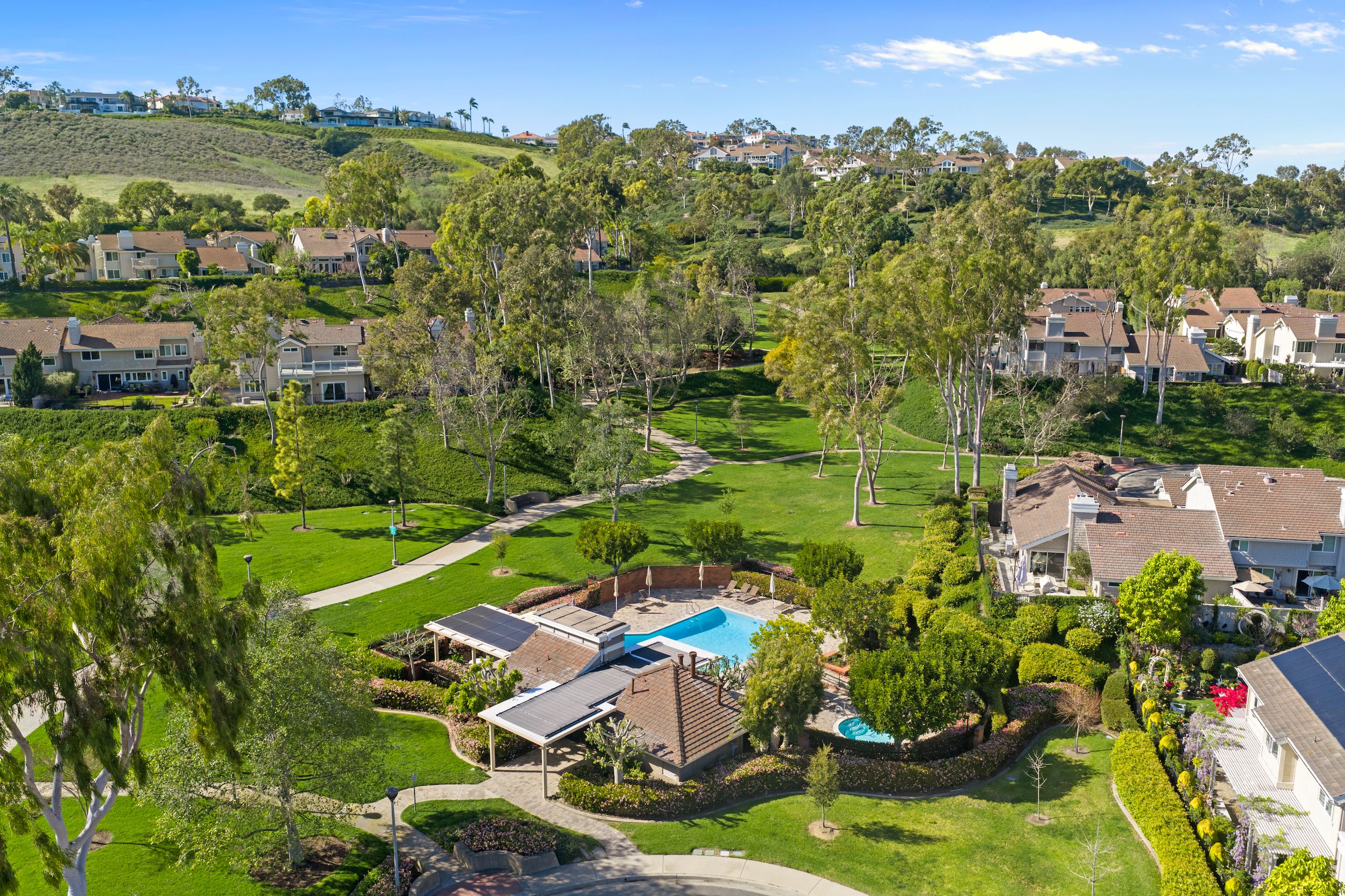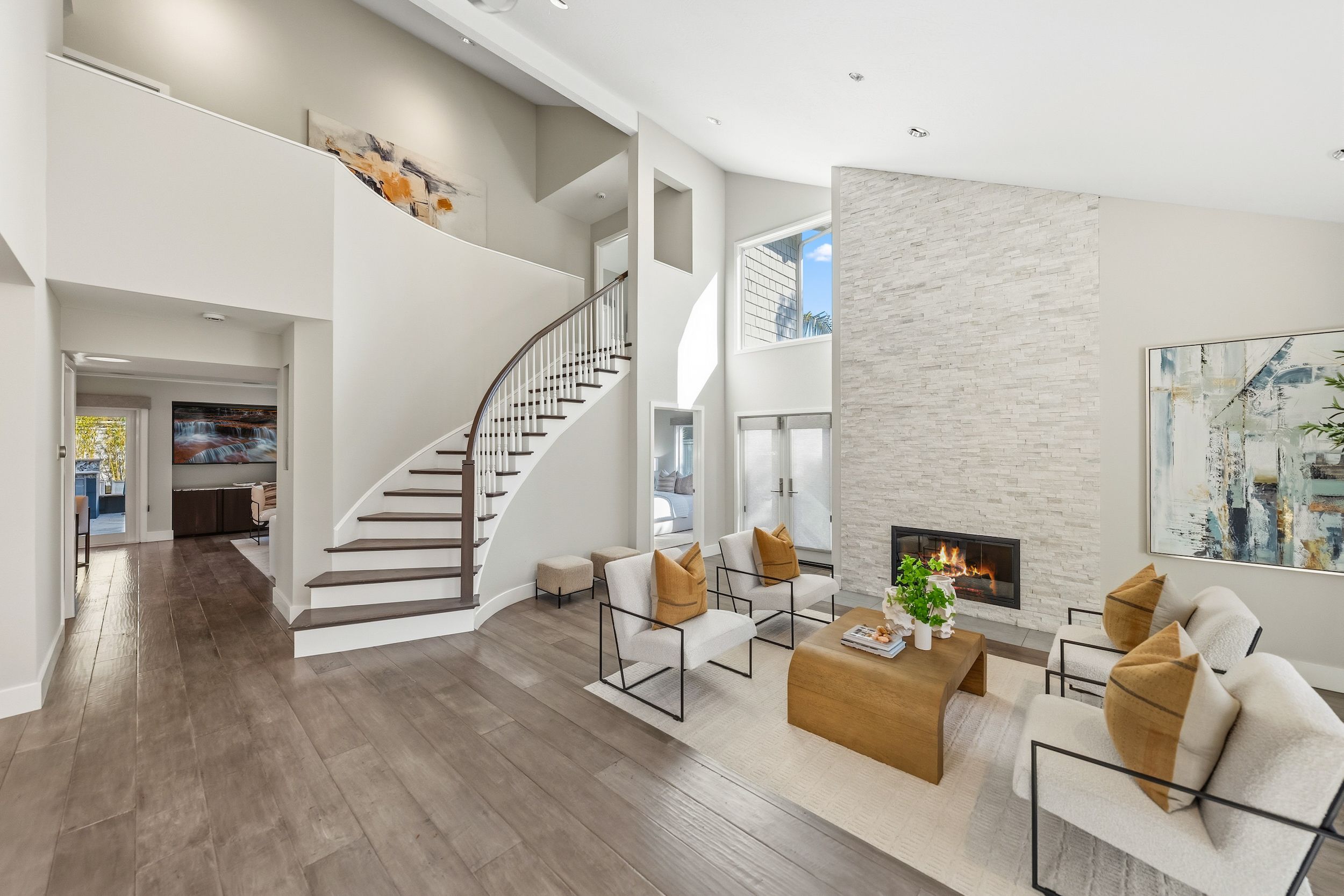Welcome to this stunning 5-bedroom, 3-bath Orange County retreat where resort-style living meets everyday comfort in one of Irvine's most sought-after neighborhoods. From the moment you step inside, soaring ceilings and sun-drenched living spaces exude warmth and sophisticated contemporary styling throughout this beautifully maintained 3,000 sq. ft. home. The heart of the home is a sleek, well-appointed kitchen featuring quartz counters, custom cabinetry, and a chef-inspired appliance suite — perfect for everything from casual family meals to elegant entertaining. A gracious living room anchored by a stunning ledger stacked stone fireplace flows effortlessly to the dining room, while a convenient downstairs bedroom and full bath offer ideal flexibility for guests or multigenerational living. Wide plank wood flooring, soaring ceilings, solid core doors, 5-inch baseboards, and newly installed energy-efficient windows speak to the quality of finishes found throughout. Upstairs, the spacious primary suite is a true sanctuary, complete with a spa-inspired bath featuring a soaking tub, walk-in shower, dual vanities, and a generous walk-in closet, while three additional bedrooms and a dedicated home office provide space and flexibility for every lifestyle. Step outside to your own private paradise — a breathtaking pool and spa framed by soaring palms, lush tropical landscaping, and elegant stone pillar accents with cascading water features, all flowing seamlessly to a generous covered patio where a pendant-lit dining area and built-in BBQ set the stage for unforgettable gatherings under the Southern California sky. Adding to the home's exceptional value, a fully owned solar panel system paired with a Tesla Powerwall battery delivers energy independence and meaningful utility savings, while a whole-home water filtration system ensures clean, purified water at every tap. Ideally located within walking distance to top-rated Bonita Canyon Elementary and nationally ranked University High School, and just minutes from the 405 and 73 freeways, with very low association dues and no Mello Roos tax, this meticulously maintained home truly represents the best of Orange County living.