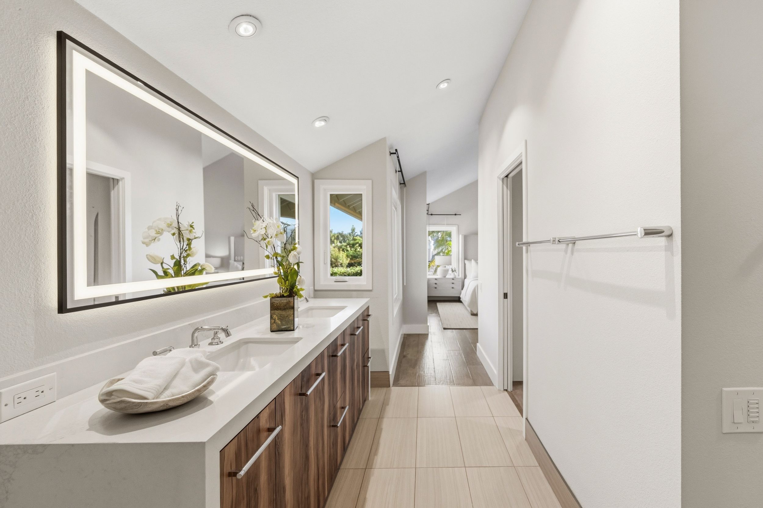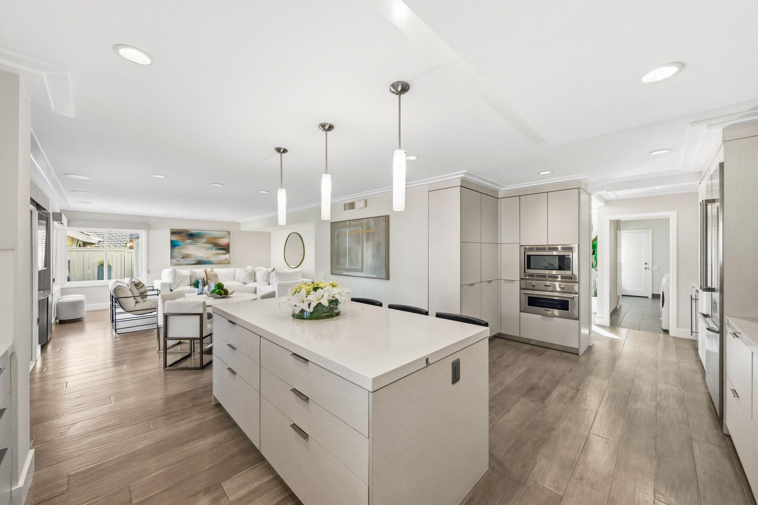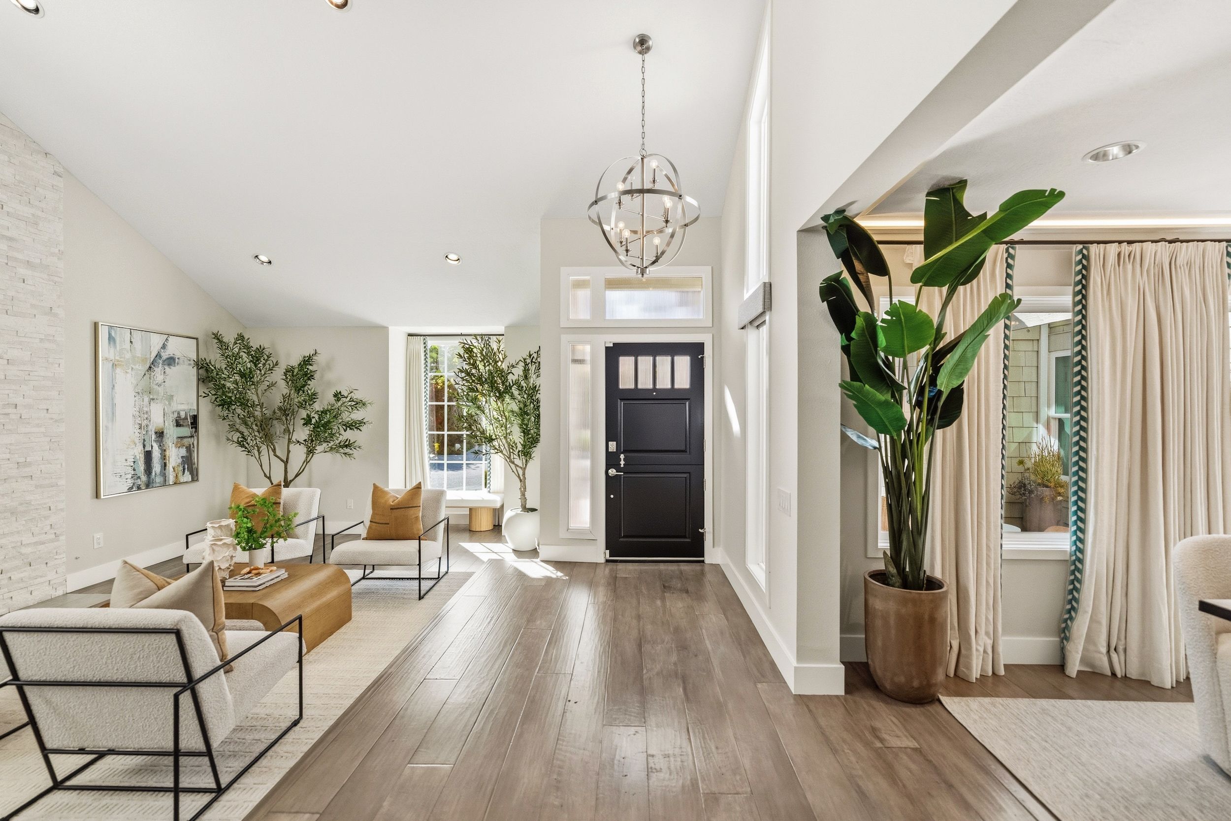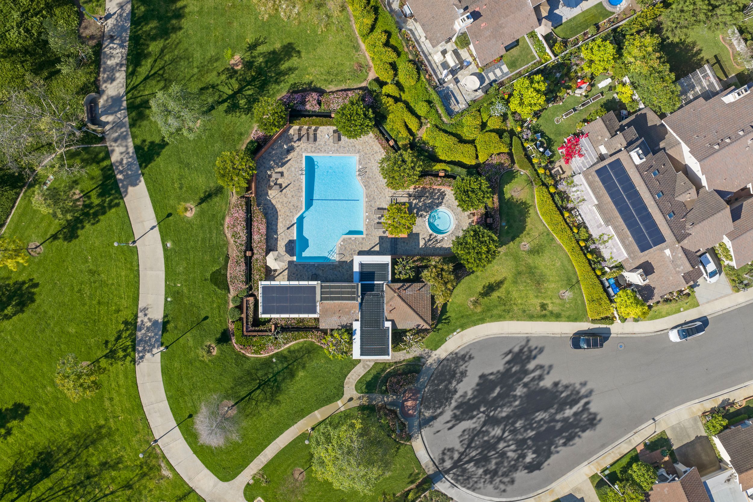 Welcome to this stunning 5-bedroom, 3-bath Orange County retreat where resort-style living meets everyday comfort in one of Irvine's most sought-after neighborhoods. From the moment you step inside, soaring ceilings and sun-drenched living spaces exude warmth and sophisticated contemporary styling throughout this beautifully maintained 3,000 sq. ft. home. The heart of the home is a sleek, well-appointed kitchen featuring quartz counters, custom cabinetry, and a chef-inspired appliance suite — perfect for everything from casual family meals to elegant entertaining. A gracious living room anchored by a stunning ledger stacked stone fireplace flows effortlessly to the dining room, while a convenient downstairs bedroom and full bath offer ideal flexibility for guests or multigenerational living. Wide plank wood flooring, soaring ceilings, solid core doors, 5-inch baseboards, and newly installed energy-efficient windows speak to the quality of finishes found throughout. Upstairs, the spacious primary suite is a true sanctuary, complete with a spa-inspired bath featuring a soaking tub, walk-in shower, dual vanities, and a generous walk-in closet, while three additional bedrooms and a dedicated home office provide space and flexibility for every lifestyle. Step outside to your own private paradise — a breathtaking pool and spa framed by soaring palms, lush tropical landscaping, and elegant stone pillar accents with cascading water features, all flowing seamlessly to a generous covered patio where a pendant-lit dining area and built-in BBQ set the stage for unforgettable gatherings under the Southern California sky. Adding to the home's exceptional value, a fully owned solar panel system paired with a Tesla Powerwall battery delivers energy independence and meaningful utility savings, while a whole-home water filtration system ensures clean, purified water at every tap. Ideally located within walking distance to top-rated Bonita Canyon Elementary and nationally ranked University High School, and just minutes from the 405 and 73 freeways, with very low association dues and no Mello Roos tax, this meticulously maintained home truly represents the best of Orange County living.