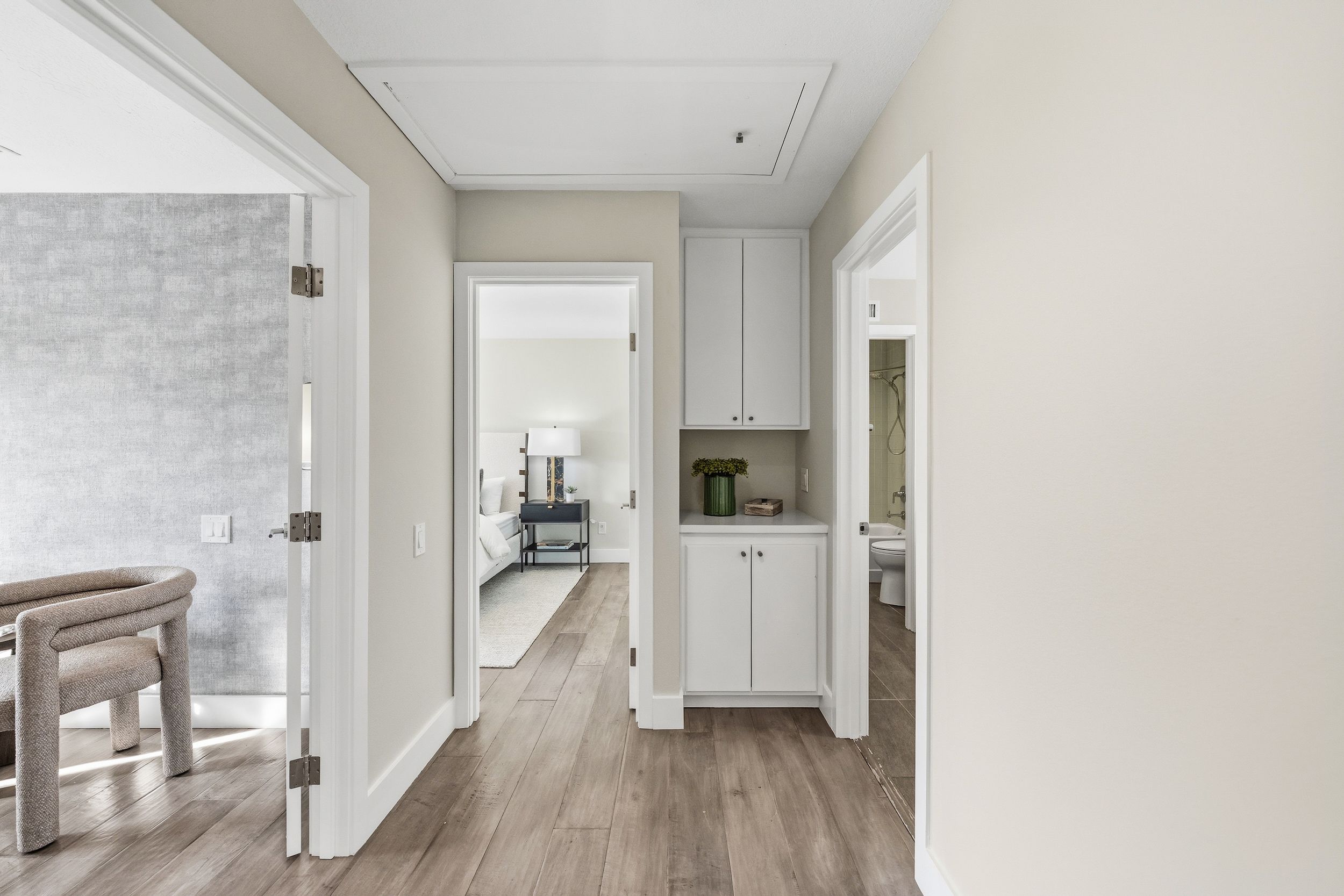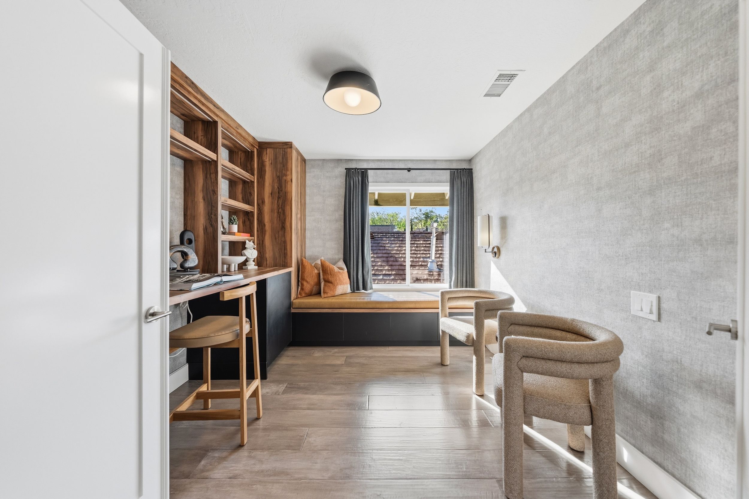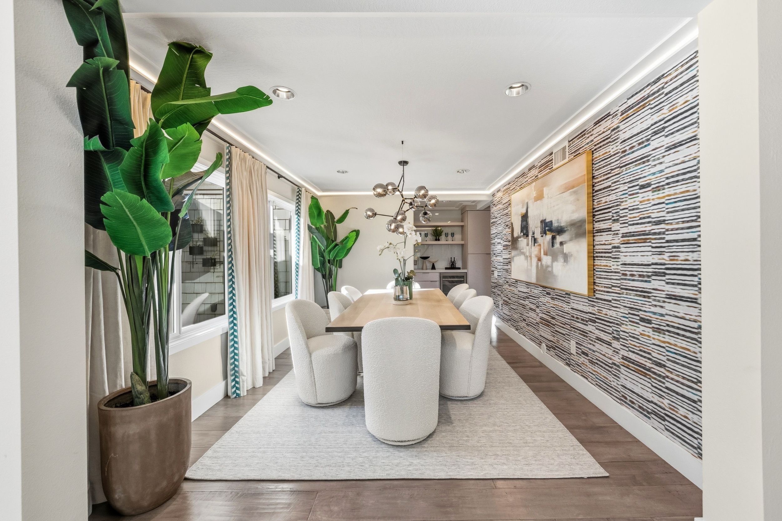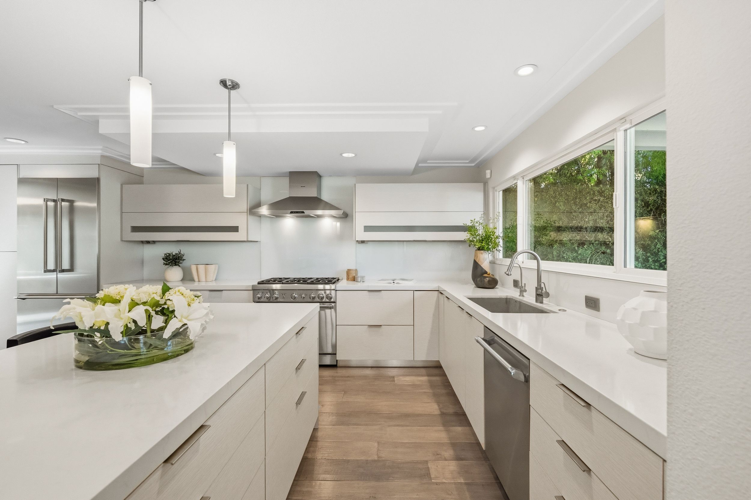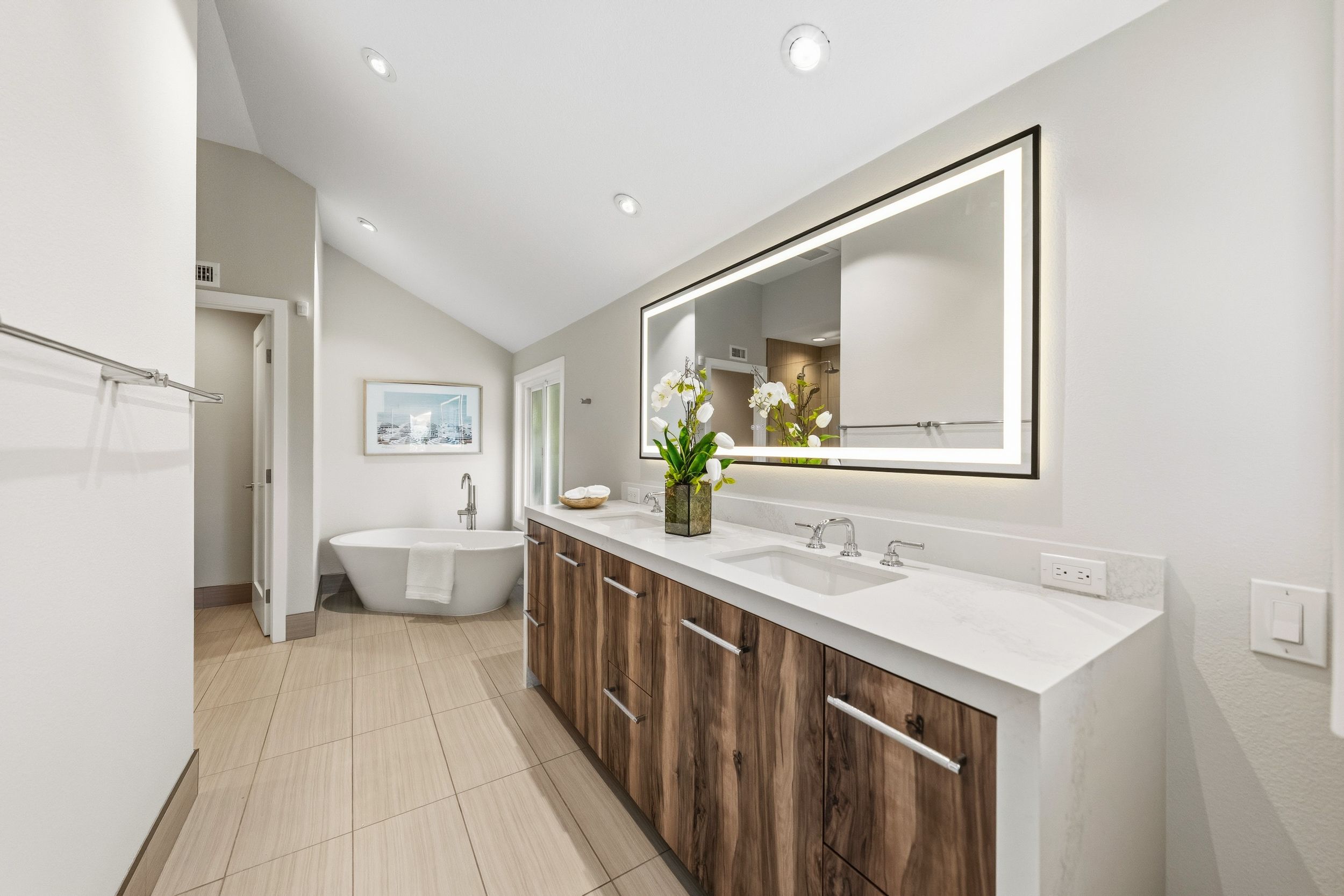 Welcome to this stunning 5-bedroom, 3-bath Orange County retreat where resort-style living meets everyday comfort in one of Irvine's most sought-after neighborhoods. From the moment you step inside, soaring ceilings and sun-drenched living spaces exude warmth and sophisticated contemporary styling throughout this beautifully maintained 3,000 sq. ft. home. The heart of the home is a sleek, well-appointed kitchen featuring quartz counters, custom cabinetry, and a chef-inspired appliance suite — perfect for everything from casual family meals to elegant entertaining. A gracious living room anchored by a stunning ledger stacked stone fireplace flows effortlessly to the dining room, while a convenient downstairs bedroom and full bath offer ideal flexibility for guests or multigenerational living. Wide plank wood flooring, soaring ceilings, solid core doors, 5-inch baseboards, and newly installed energy-efficient windows speak to the quality of finishes found throughout. Upstairs, the spacious primary suite is a true sanctuary, complete with a spa-inspired bath featuring a soaking tub, walk-in shower, dual vanities, and a generous walk-in closet, while three additional bedrooms and a dedicated home office provide space and flexibility for every lifestyle. Step outside to your own private paradise — a breathtaking pool and spa framed by soaring palms, lush tropical landscaping, and elegant stone pillar accents with cascading water features, all flowing seamlessly to a generous covered patio where a pendant-lit dining area and built-in BBQ set the stage for unforgettable gatherings under the Southern California sky. Adding to the home's exceptional value, a fully owned solar panel system paired with a Tesla Powerwall battery delivers energy independence and meaningful utility savings, while a whole-home water filtration system ensures clean, purified water at every tap. Ideally located within walking distance to top-rated Bonita Canyon Elementary and nationally ranked University High School, and just minutes from the 405 and 73 freeways, with very low association dues and no Mello Roos tax, this meticulously maintained home truly represents the best of Orange County living.