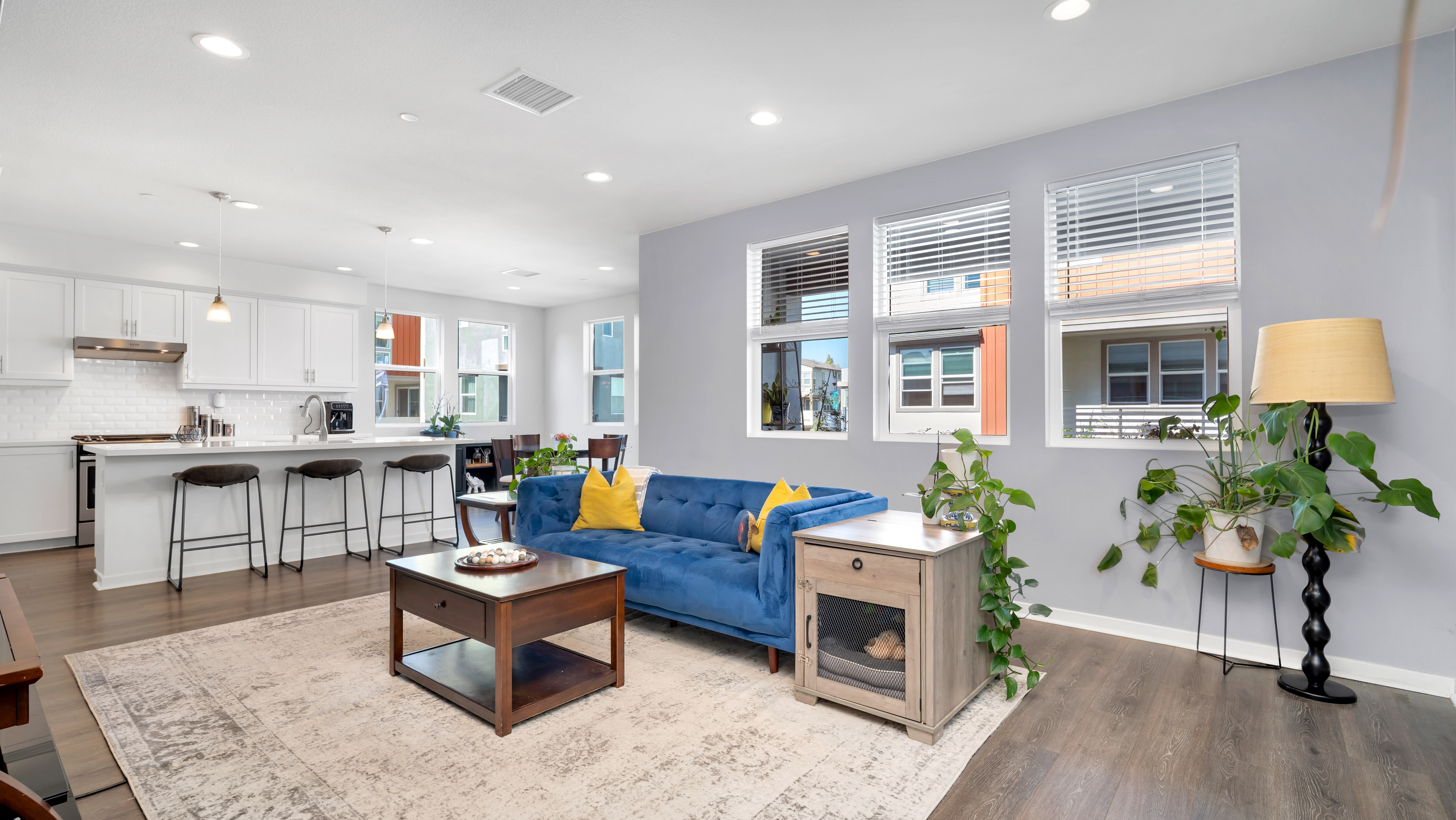 Welcome Home to 125 Allusion – A Modern Paired Townhome with Comfort and Connectivity at Novel Park in the Great Park Neighborhoods. Filled with natural light, this townhome offers over 1,700 sqft of living space and is the perfect blend of modern style and functional living, with the added privacy of only one shared wall on a PREMIUM LOT with building next to or across from the home. Thoughtfully designed for versatility, the main level offers an en-suite bedroom, perfect for a home office or guest room. On the second floor, the open-concept great room is the heart of the home, seamlessly connecting the living, dining, and kitchen areas perfect for both everyday living and entertaining. The chef’s kitchen impresses with white shaker cabinets, sleek quartz countertops, a stylish subway tile backsplash, and a built-in pantry. The center island with counter seating invites casual gatherings, while stainless steel appliances add a modern touch. Just off the great room, step out onto your private patio, offering a perfect extension of your living space ideal for morning coffee, al fresco dining, or simply enjoying the fresh air. Upstairs, you’ll find dual en-suite bedrooms, including a spacious primary suite with two walk-in closets, dual sinks, and an oversized tiled shower. Throughout the home, luxury vinyl flooring enhances the living areas, while upgraded carpet adds warmth to the bedrooms. Additional features include upstairs laundry, whole house fan, LED recessed lighting, a tankless water heater, and a 2-car attached garage for added convenience. Just steps away from Novel Park, you’ll enjoy access to its clubhouse, 2 dog parks, and The Cup, a charming neighborhood coffee shop to meet your neighbors! As a resident of the Great Park Neighborhoods, you’ll experience resort-style living with multiple pools to choose from, neighborhood parks, beach volleyball and basketball courts, outdoor kitchens, playgrounds and 12 rentable spaces for private gatherings. Plus, the Bosque Trail and a network of scenic walking and biking trails weave throughout the community, connecting you to parks, gardens, and recreational spaces perfect for an active, outdoor lifestyle. Located just minutes from award winning IUSD Schools Beacon K-8 and Portola High, and a short drive to Woodbury Town Center, Irvine Spectrum, and Laguna Beach, this home offers unbeatable convenience. Don’t miss your chance to experience elevated living at 125 Allusion.