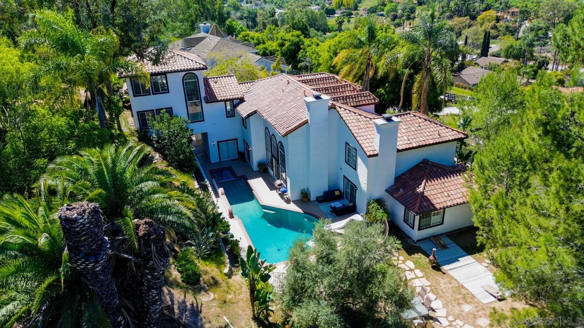 Set on just over an acre at the end of a quiet cul-de-sac, 1696 Gil Way offers 5,120 sq ft with 6 bedrooms and 6 bathrooms, designed for both everyday living and effortless entertaining. High ceilings, abundant natural light, and an open layout create a seamless connection between the main living spaces. The kitchen is both functional and refined, featuring high-end appliances, stone surfaces, custom cabinetry, and a large island that anchors the home and brings people together. The primary suite is on the main level, offering privacy, generous space, and a spa-style bathroom. The floor plan includes multiple living areas and bedroom suites, making it well-suited for guests or multigenerational living. Upstairs, a separate wing features two bedrooms with a shared en-suite bathroom, along with a spiral staircase leading to a private living room—ideal for a retreat, office, or additional lounge space. The backyard is designed to be enjoyed, with a pool, surrounding patio areas, and multiple spaces to relax, entertain, or unwind in a private setting that captures the essence of Southern California living. Conveniently located near schools, dining, and golf.