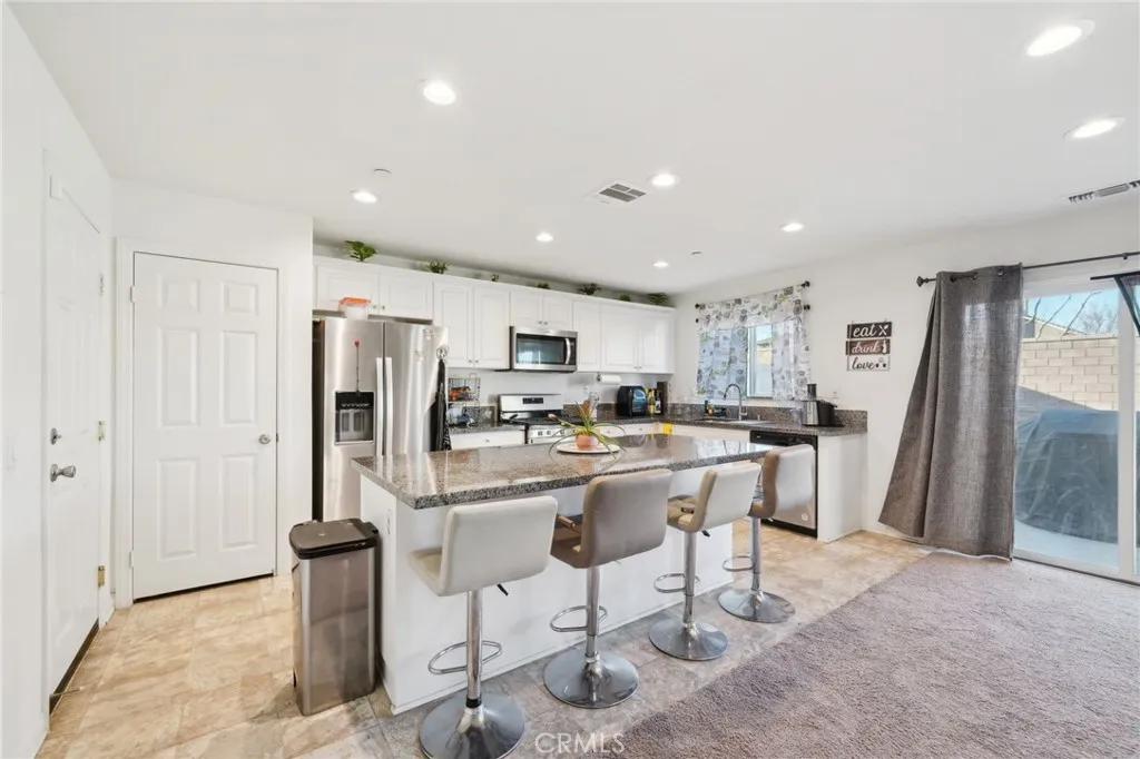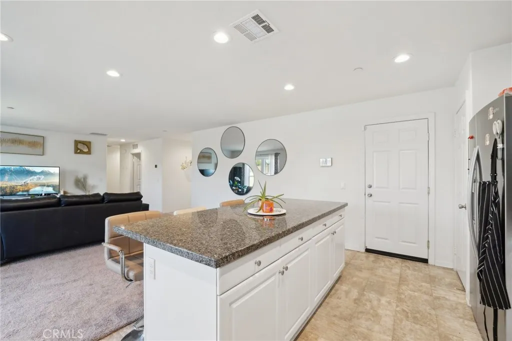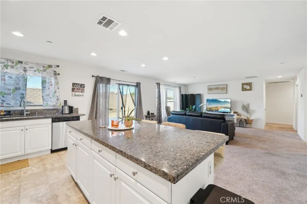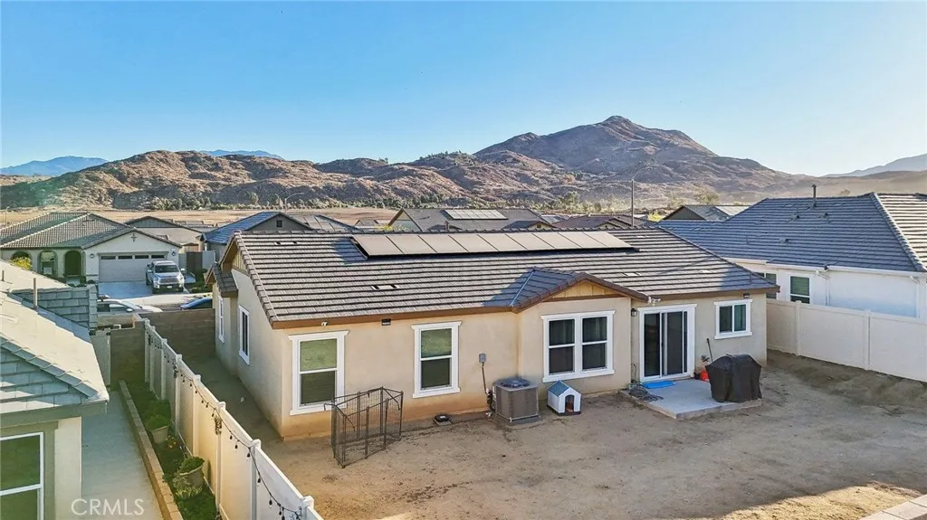 Experience the comfortable, laid-back living you want in this delightful 3-bedroom, 2-bath single-story home in a beautiful Hemet neighborhood! Past the foyer, continue to the open-concept main gathering areas filled with natural light, illuminating a crisp white palette, textured tiles, and plush carpeting underfoot. Glass sliders off the dining alcove beckon you to enjoy scenic alfresco celebrations. Steps away, the bright kitchen makes cooking a breeze with its stainless steel appliances, abundant cabinetry, and granite countertops that extend to the eat-at island. Three well-sized private quarters accommodate you and overnight guests, two of which share a tiled bath. Outshining the others, the primary retreat features a large walk-in closet and a refreshing ensuite with a separate shower and soaking tub. Outside, a versatile fenced-in yard presents plenty of potential for fun and leisure activities. Additionally, theres a laundry room, an attached 2-car garage, and solar panels for energy efficiency. Notable perks include access to incredible community amenities like the pool, recreational areas, and picnic parks, full gym in the club house. Come for a tour while this great opportunity is still available!
