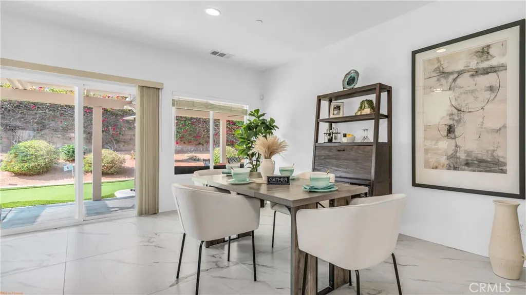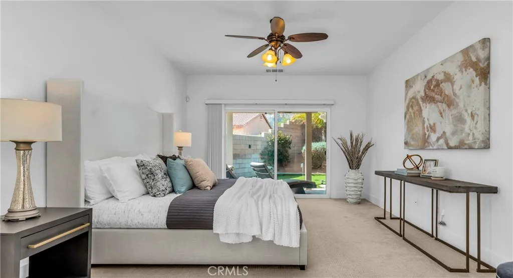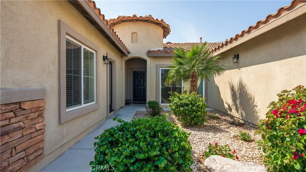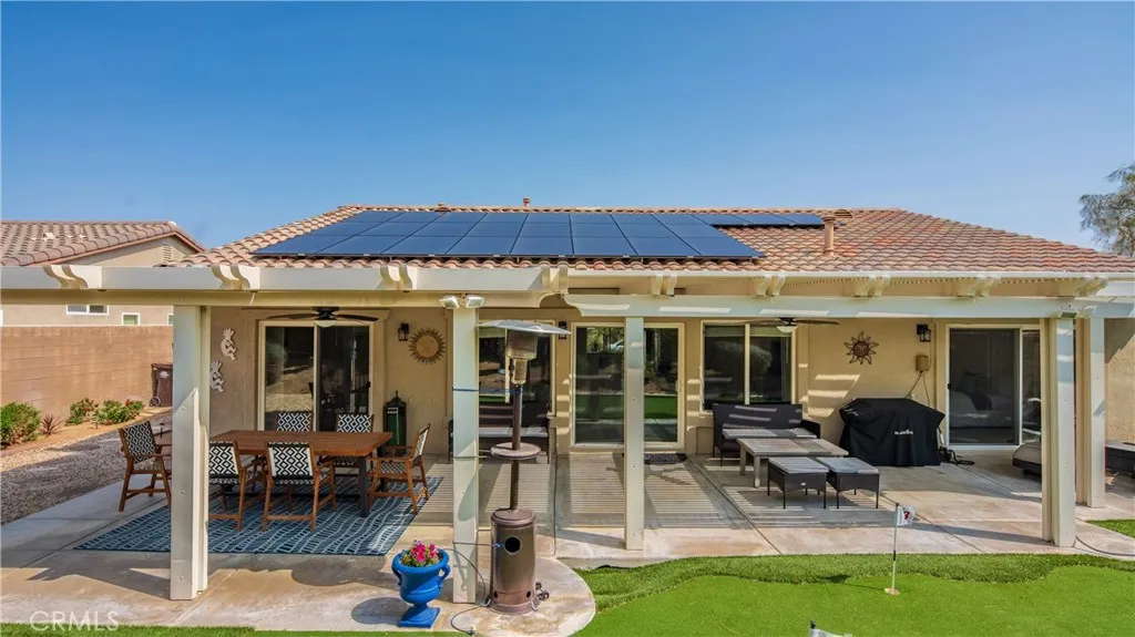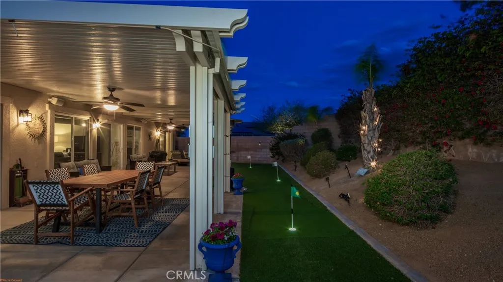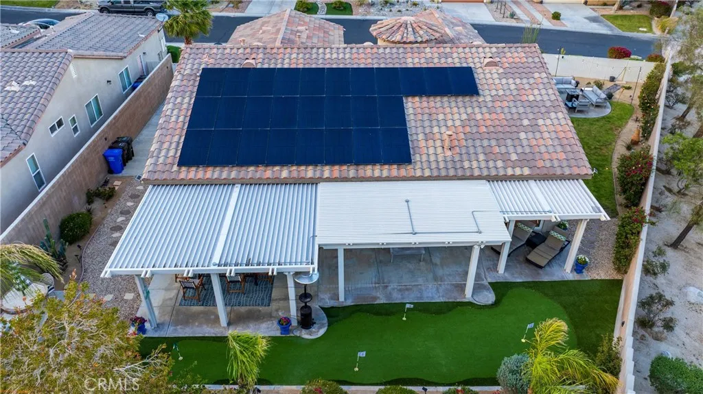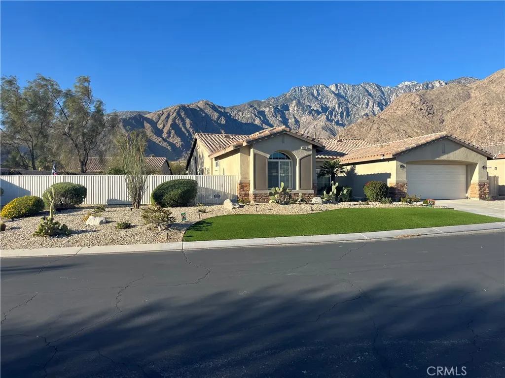 OWNED SOLAR + ADDITIONAL GENERATORS! GREEN LIVING IN A RESORT-STYLE HOME! MOST POPULAR FLOORPLAN. THIS IS THE BELLA PLAN 202 WITH A SEPARATE 4TH BEDROOM/CASITA!! Nestled in the sought-after Mountain Gate community of Palm Springs, at the base of the breathtaking San Jacinto Mountains, 1171 Palmas Ridge offers an exceptional blend of luxury, efficiency, and versatility. Sitting on a premium oversized lot (10,454 SF), this single-story dream home is ideal as a primary residence, vacation retreat, or investment property. Designed for comfort and flexibility, the home features four bedrooms, including a private Casita/ADU. One bedroom is completely separate with a private entrance, making it perfect for use as an ADU or guest suite. The spacious primary suite provides a peaceful retreat, while two additional bedrooms are situated on the opposite side of the great room for added privacy. Inside, the home boasts newly updated light matte white porcelain tile flooring, enhancing the bright and airy ambiance. The expansive open-concept great room flows seamlessly into the light-filled kitchen, creating an inviting space for entertaining. Additional updates include fresh interior paint (2023) and an epoxy garage floor. Step outside to an exceptional outdoor living experience. The property features expansive RV parking, an outdoor BBQ & misting system, and a private 4-hole putting greena golfers dream for practice! Take in majestic views of the San Jacinto Mountains & Palm Springs Tram from the beautifully landscaped side yard, fondly called The Park. The resort-style Mountain Gate c