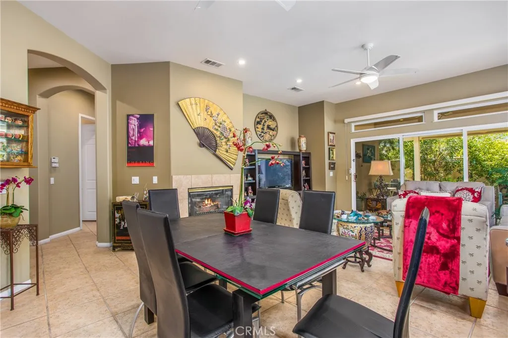 This desirable Trillion model is ideally positioned on a quiet cul-de-sac and showcases a host of thoughtful improvements. There are countless pluses to enjoy as you tour this well-appointed home. A new $30,000 price reduction further enhances the appeal of this exceptional property. As you enter, you will see the convenient guest bedroom with custom built-in bookcases, walk-in closet, ceiling fan, dual sinks, soaking tub and a walk-in shower. Guest bedroom has direct access to the guest bathroom. Home has beautiful white tile, carpet in primary bedroom and den, tile in bathrooms and beautiful tile flooring in the kitchen and laundry room. Kitchen countertop is Corian. The great room is open to the dining room and kitchen with a gas fireplace and lots of windows for plenty of sunshine. A ceiling fan and a sliding glass door to the covered Alumawood patio area that leads to a charming backyard with 2 chaise lounges, glass-top picnic table with 4 chairs and umbrella along with a lovely fountain. This home has been meticulously maintained and is move in ready. More extras: Whole house humidifier, whole house Culligan soft water system which also supplies water to refrigerator ice-maker, 2 sky lights, jacuzzi tub in master bathroom, HVAC system with hourly fresh air, heating system compressor replaced in 2017, master bathroom has instant hot water, 3 new toilets 17 and low water usage. You will not have to worry about your pets there is a pet cage with entrance from bedroom. Appliances: stove, refrigerator, microwave Samsung purchased in 2017; washer and dryer Samsung purcha