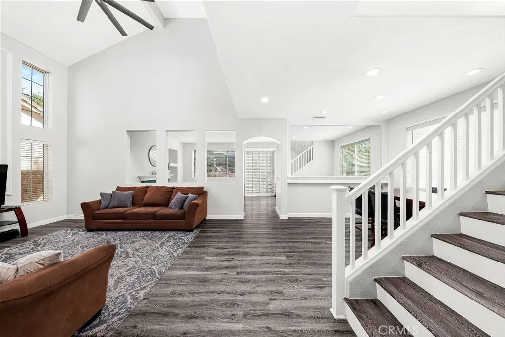 No Hoa or Mello Roos in this Cottage Glen home with 3 CAR GARAGE on a CUL-DE-SAC in the Plum Canyon area. Welcome Home to this light and bright space with lots of windows and high ceilings. Newer paint and high-end vinyl floors throughout. Newer stone counters and stainless sink in kitchen. All existing kitchen appliances included (purchased 3 years ago). All bedrooms UP. Lighting and switch plates/electrical outlets and plates updated. Newer water heater (2024). Big Ass Fan (Brand Name) installed in living room. Indoor laundry room which includes existing washer and dryer. 3 car garage offers extra space for vehicle storage and/or work/craft space. Extra wide concrete driveway. Back yard is a blank slate to do what you wish. David March Park & Plum Canyon Elementary are in the neighborhood. Popular restaurants, coffee shop, grocery stores, and fuel station nearby. Come see : )