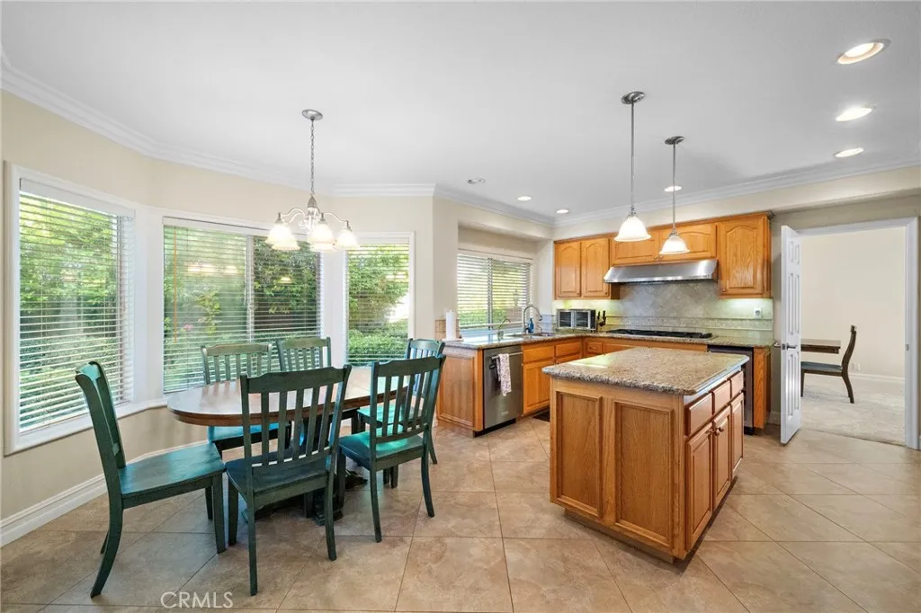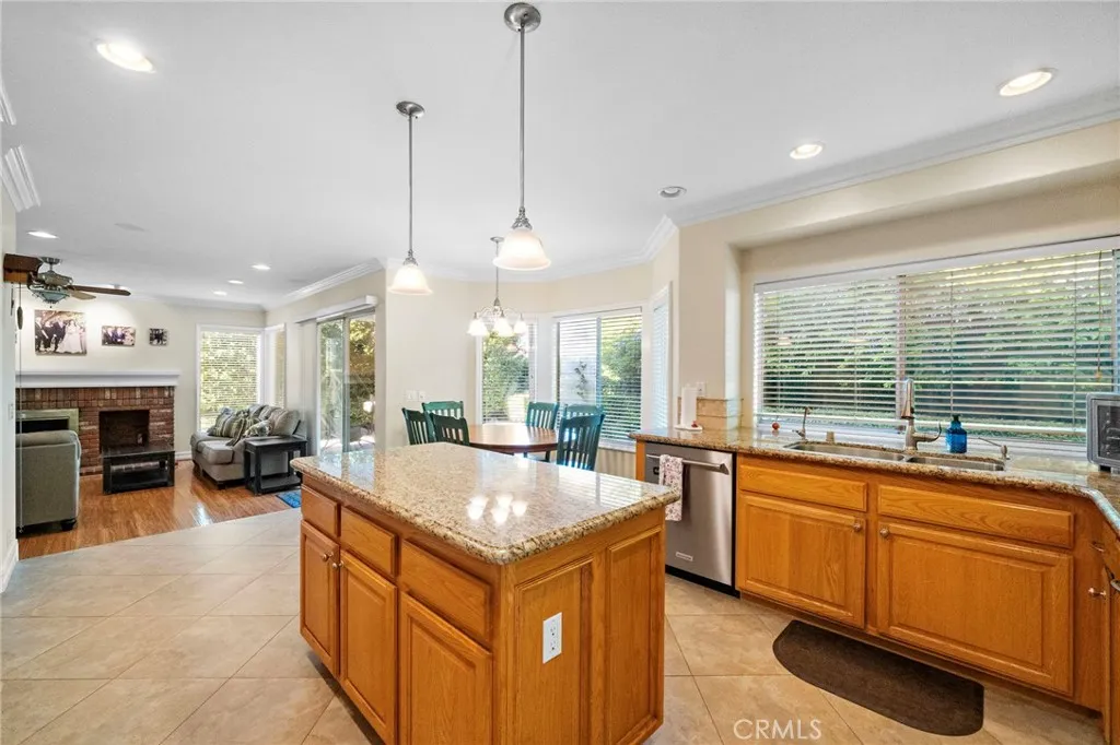 Nestled in the prestigious Belmont Estates community, this beautifully updated 5-bedroom, 3-bathroom residence offers over 3,300 square feet of refined living space. A formal tiled entry leads to a spacious living room with a stately fireplace and an elegant dining room ideal for entertaining. The expansive family room with a brick fireplace and wet bar opens to a well-appointed kitchen featuring granite countertops, double ovens, a center island, and a sunny dining nook overlooking the lush backyard. A desirable main-level bedroom and full bath provide the perfect setup for guests or multi-generational living. Upstairs, the grand primary suite features a walk-in closet, dual vanities with granite countertops, an oversized walk-in shower, and a relaxing Jacuzzi tub with city light views. Two additional bedrooms share a well-sized bath with dual sinks and a tub/shower combination. A large upstairs bonus room offers flexible space for a media room, playroom, or home office. The beautifully landscaped backyard features two covered patios and mature greenery, ideal for outdoor entertaining. Additional highlights include a spacious indoor laundry room with sink and cabinetry and brand-new carpet throughout. Located in the hills of Orange, this home combines comfort, space, and timeless appeal in a highly sought-after gated enclave