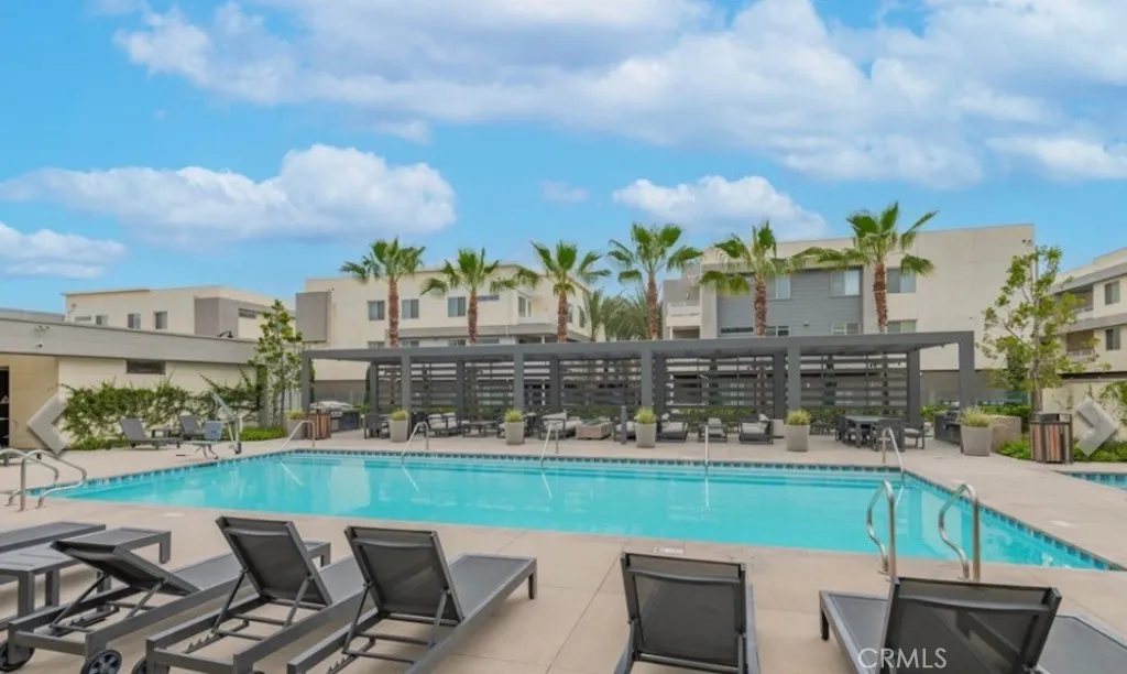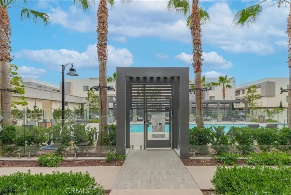 Welcome to this stunning condo, in the heart of Anaheim's Platinum Triangle. This luxurious two bedroom, two bath home features a spacious and modern single level floor plan. The gourmet kitchen includes granite countertops, stainless steel appliances, and huge island ideal for entertaining. The large living room opens to the balcony perfect for indoor and outdoor living. The primary suite is a true sanctuary with spacious ensuite bath, dual sink vanity and enclosed spa-like shower. The secondary bedroom features a generous closet space. Highlights include: tandem garage with extra storage and EV charger, laundry room, laminated flooring, recessed lighting, water filter, digital door lock, window blinds, central trash chute. The community is like exclusive resort style living, including BBQ areas, pools , jacuzzi, dog parks, locker room for package deliveries. Minutes from Disneyland, Downtown Disney, Angel's Stadium, shops, restaurants and Easy access to the 5, 57 and 22 freeways. Don't wait to see this turn-key home!