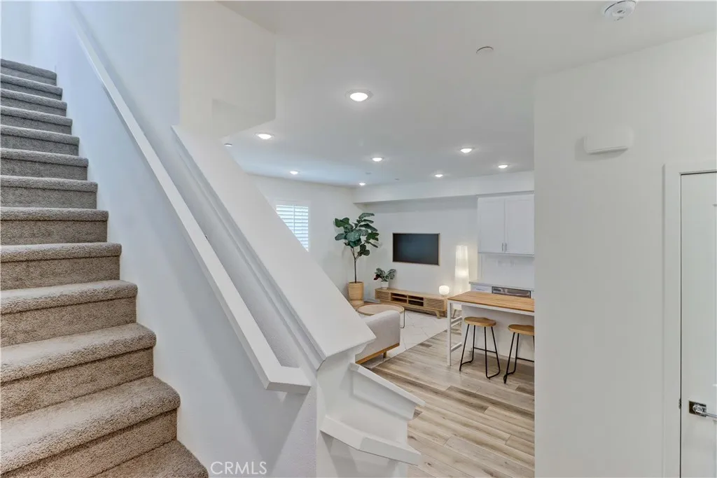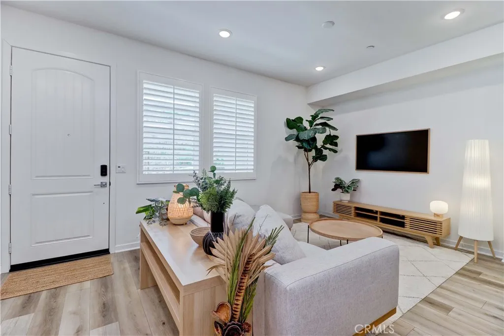 Seller will credit buyer $10,000 for closing cost. Welcome to Saddleback Place by Trumark Homes where you'll find the perfect blend of luxury, style , and functionality. For those seeking comfort and contemporary living, this open floorplan offers a seamless flow making the spacious 833 square feet feel airy and expansive. Large duel pane windows flood the interior with natural light, highlighting the high-end finishes and attention to detail. Upgrades include premium wood vinyl flooring, plantation shutters, stainless appliances, sleek counter tops, white thermofoil cabinets, recessed lighting, tankless water heater, solar and an over sized 1 car garage with additional dedicated parking space. The expansive upstairs bedroom and nearly 15' ceiling height offers an expansive ambiance with tons of light. With it's unbeatable combination of views, spacious and sophisticated upgrades, this nearly new condo is truly an experience in modern living at it's finest. The community offers a relaxing pool and spa area with bbq. There is easy access to the 241 and multiple freeways, shopping and entertainment. Don't miss this opportunity!