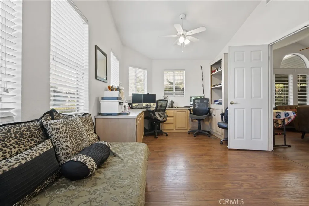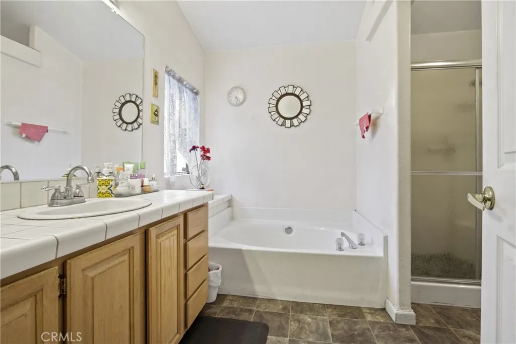 NEW LOWER PRICE! PRICED TO SELL JUST FOR THE RIGHT BUYER! THIS TRANQUIL HOME IS A MUST SEE! A ground-level residence, there are no porch stairs. Its oversized lot is spacious with a quaintly fenced-in yard featuring a built-in fountain, gas BBQ, grass, & beautiful trees that offer shade & privacy. Built in 1995, this 1782 sq ft home offers a well-designed layout with 3 bedrooms & 2.5 bathrooms, a family room, a formal living room with a stunning gas-burning fireplace of stucco/tile with a mantle-to-ceiling mirror, bringing warmth & depth to the room. The formal dining area is adjacent to the formal living area with a pass-through space between the dining room and kitchen. The open floor plan creates a seamless flow throughout the home, enhanced by abundant natural light pouring in through multiple skylights & generously sized windows. The kitchen is spacious enough for multiple helpers during special occasions, & island is large enough for seating at the end. Adjacent to the kitchen, the family room provides ample space for an additional dining area as well as plenty of space to relax as a family. All 3 bedrooms are generously sized & have walk-in closets. The 1st & 2nd bedrooms are connected by a Jack & Jill bathroom, & include a stall shower with a sitting bench. The 2nd bedroom features double doors & a custom-built-in workstation (which can be removed if desired). The primary suite is generously sized, with a separate walk-in closet just off the primary bath, which includes a Roman-style tub & a separate stall shower. Additional features of this home include two skyligh