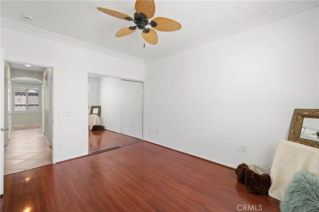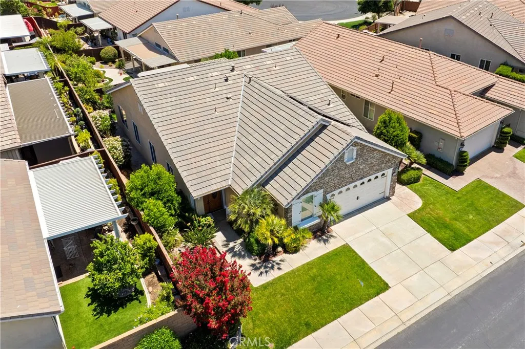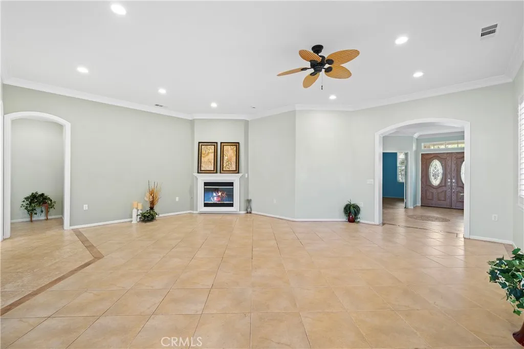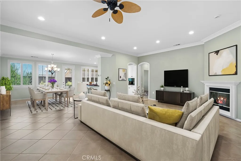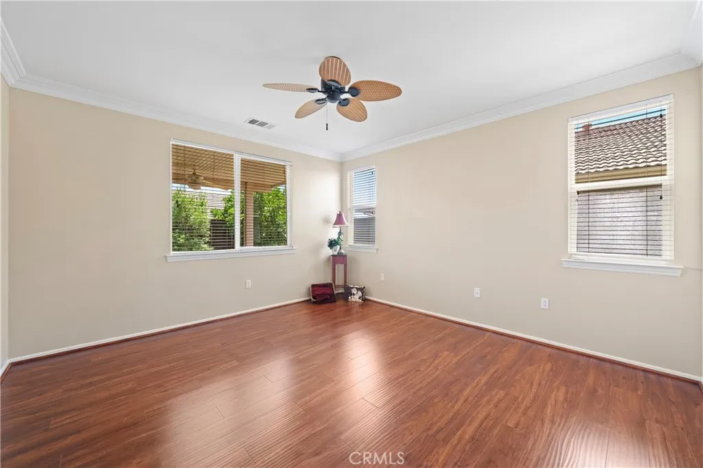 Discover this immaculate turnkey single-level Invitational 2 property, perfectly situated in the vibrant OVER 55 gated community of Four Seasons Hemet. With a leased solar system for energy efficiency, this home is designed for both comfort and convenience. As you step through the elegant double doors adorned with leaded glass, you will be greeted by a bright and airy open floor plan thats ideal for relaxation and entertaining. Retractable screens on the front and back doors provide a seamless blend of indoor and outdoor living. This charming residence features two spacious bedrooms and two luxurious full baths. Elegant wood floors grace the bedrooms and office, while stylish tile with decorative borders enhances the main living areas. Enjoy the ambiance created by plantation shutters, crown molding, and ceiling fans throughout the home. The kitchen is a chefs delight, boasting a generous oversized island with convenient pull-out drawers, stunning granite countertops, and a brand-new refrigerator. The dining room, located just across the island, offers the perfect setting for family meals. The cozy great room features a fireplace, providing a warm ambiance for gatherings. Retreat to your opulent primary suite, complete with a luxurious ensuite featuring a walk-in tub, bidet, and a separate shower equipped with grab bars. The guest bathroom is equally impressive, showcasing an upgraded tiled shower that seamlessly complements the bathroom design. The guest bedroom features mirrored closet doors for added style and functionality. The garage is a true standout, featuring sleek