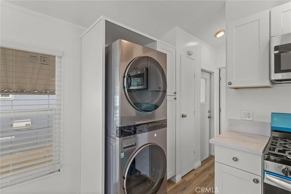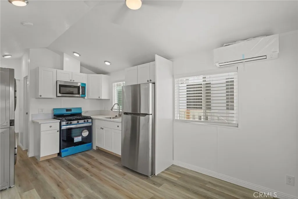 Completely renovated and move-in ready, this beautifully updated manufactured home offers approximately 480 square feet of comfortable living space in the established Orange Grove Mobile Home Park of Covina. Featuring 1 bedroom and 1 bathroom, this residence has been thoughtfully refreshed from the floors up, combining modern finishes with everyday convenience. Step inside to discover a bright, open layout enhanced by durable vinyl plank flooring, energy-efficient mini-split heating and cooling, and recessed LED lighting throughout. The stylish kitchen showcases white shaker cabinetry, sleek Corian countertops, a deep single-basin sink with a high-arc faucet, and all kitchen appliances included for effortless everyday living. Practical amenities include an in-unit washer and dryer and access to a cozy covered patio, perfect for relaxing or entertaining outdoors. The interiors clean design and thoughtful updates create a welcoming environment with plenty of natural light. Residents enjoy community features including a sparkling pool and well-maintained grounds, enhancing the comfortable and social setting of the park. Ideally located near major freeways, shopping centers, and entertainment venues, this home offers both convenience and value. This property presents an amazing opportunity to own a fully renovated, move-in-ready home in a desirable manufactured home community. Schedule your showing today to experience all that this residence has to offer