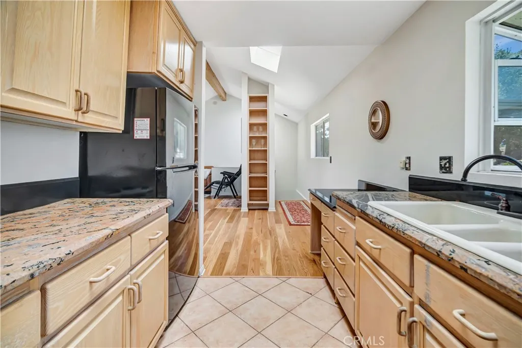 Wake up to a stunning panoramic view in this bright, spacious two bedroom + office, two bathroom retreat in the serene canyon woodlands of this sparsely populated coastal community. Relisted with ongoing upgrades, including roof, hardwood floors and most appliances. Actual square footage is 1832, all in the approved plans on hand. Built to last with expertly engineered caissons for earthquake resistance, interior sprinklers and double paned windows for fire resistance, and a wind resistant architectural shingle roof. Hand crafted oak cabinetry, rare South African granite counters and artisanal fixtures. Savor the quiet as you relax in the Japanese ofuro spa, cozy and snug by the wood/gas fireplace, gazing at the night skyscape, or enjoying your favorite beverage on a deck overlooking the wildlife corridor and hiking trails, or sprawling in the breezy lower unit nestled in the oaks. Ten minutes to the 101 and all the conveniences of the valley, and fifteen minutes winding through the canyon to the beach, with Santa Monica to the left and Malibu to the right. Or stay local for a meal, farmers' market or galleries showcasing local artists. The 808 square foot upper level is a complete living space with abundant natural light from three skylights, and built-ins including a granite/oak desk, eight-foot display case and entertainment center. New French doors are an additional guest entry to a keeping room extension to the master bedroom. Midlevel is 767 square feet with garage, lending itself to a home office, music room or entertaining, with a formal foyer and entry closet, and