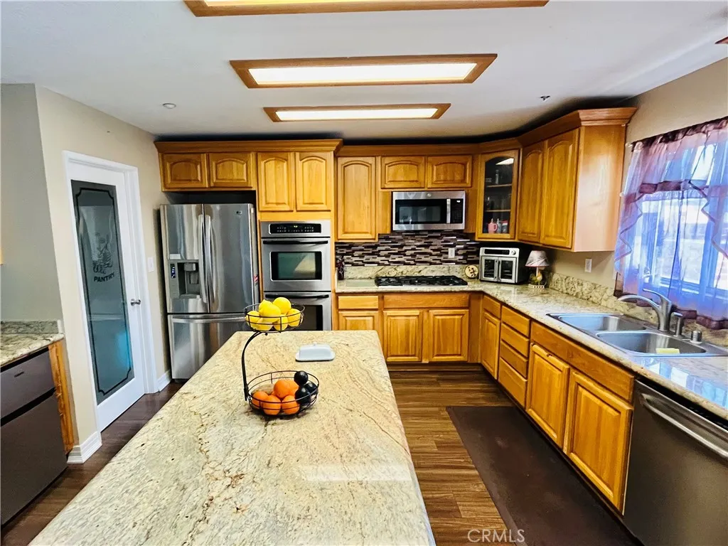 ACT FAST! PRICE SLASHED! MOVE IN BY NOVEMBER Dont miss this opportunity to own this MOVE-IN READY home with over 2700 SQUARE FEET1 This is stunning 4-bedroom 3 FULL BATH home with an office, and den that can serve as a 5th bedroom The property is situated on a quite cul-de-sac in one of Fontana's most desirable communities. Walk up the beautiful staircase with landing to find an expansive primary suite designed for relaxation, featuring dual sinks, a jacuzzi-style soaking tub, sparate shower, and expansive walk-in closet. The remaining bedrooms are on the opposit side of the stairway This thoughful floor plan allows privacy for everyone. Ideal for family living or hosting guests. The spacious loft is ideal for a game room or retreat. Downstairs features a grand living room, den or optional bedroom. You will be impressed by the large gormet kitchen with granite counter tops, a spacious Island and walk in pantry. The kitchen also provides space for a full table and chairs. There is also a huge family room to watch a movie or look out to the manicured back yard with built in grill, patio, and seating area Energy saving solar panels is an extra bonus Step outside tomanicured backyard with patio, built-in grill and seating areas designed for entertaining or relaxation. Conveniently located near shopping, restaurants, speciality stores, and with easy freeway access- This home has it all. Call today. You can be in your new home for the holidays.