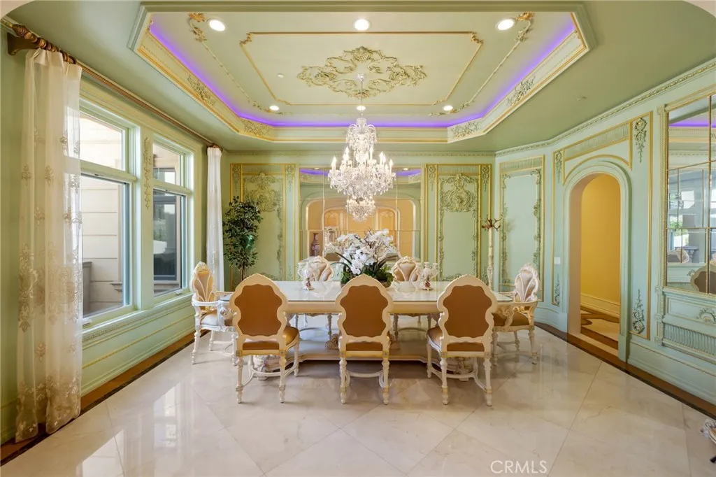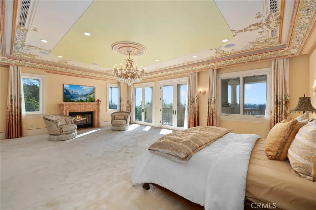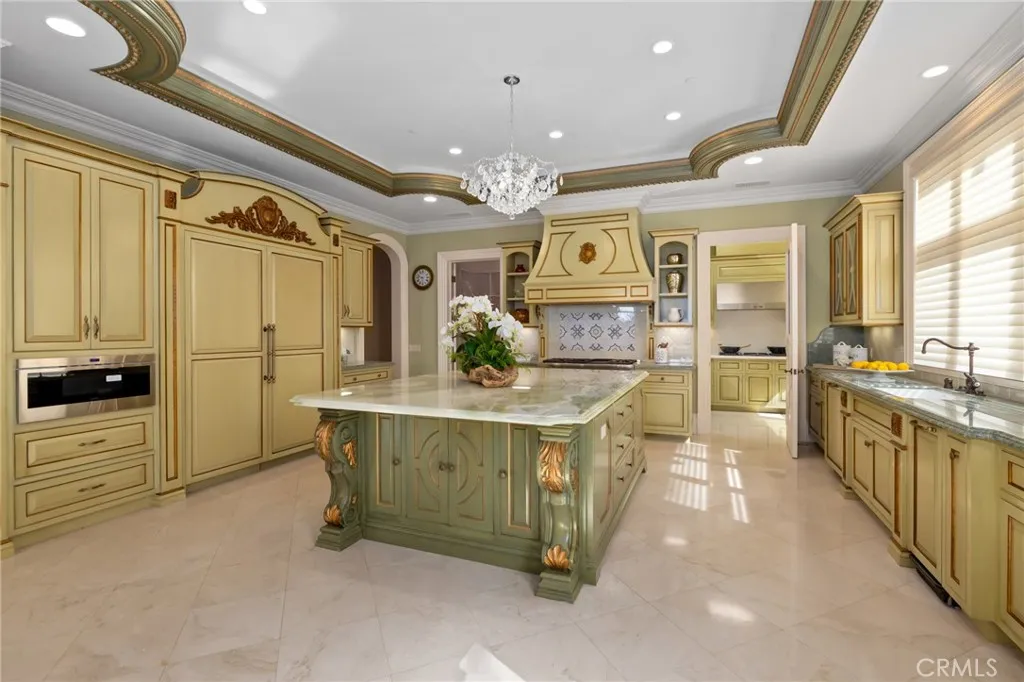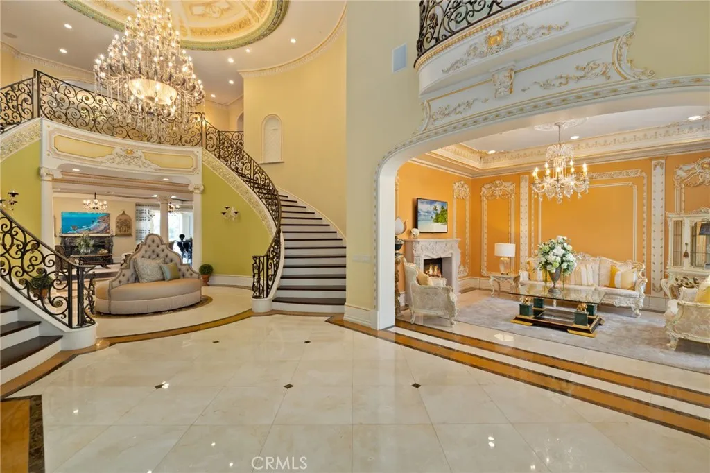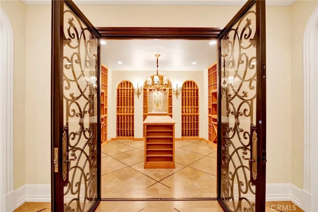 Nestled within the prestigious, 24-hour guard-gated community of Bradbury Estates, this extraordinary European-inspired masterpiece redefines luxury living. Encompassing 18,324 sq. ft. of living space on approximately 2.05 acres, the estate comprises a 16,120 sq. ft. main residence and a 2,204 sq. ft. guest house, delivering a rare combination of scale, elegance, and privacy. Designed by renowned architect Robert Tong and constructed by Mur-Sol Construction, this custom estate showcases superior craftsmanship and timeless architectural detail throughout. A dramatic 22-foot-high foyer welcomes you with a grand chandelier of cascading crystals, a sweeping dual staircase, and gleaming marble floors, setting the tone for the residences exquisite interiors. The estate offers 10 luxurious bedroom suites, 10 full bathrooms, and 4 half baths, all thoughtfully designed to balance sophistication and comfort. The showpiece gourmet kitchen seamlessly blends elegance and functionality, boasting a grand center island with an exquisite onyx countertop, professional-grade Sub-Zero refrigeration, six-burner range, and a separate wok kitchen designed for culinary mastery. Throughout the home, luxuriously appointed accents including hand-painted dome ceilings, rare imported marble, built-ins, tailored drapery, and artisan fireplaces enhances every room with distinction. The entertainers lower level offers a full complement of amenities: a state-of-the-art home theater, climate-controlled wine cellar, fitness suite, spa with sauna and steam room, an elevator, and a versatile game room. A 10-ca