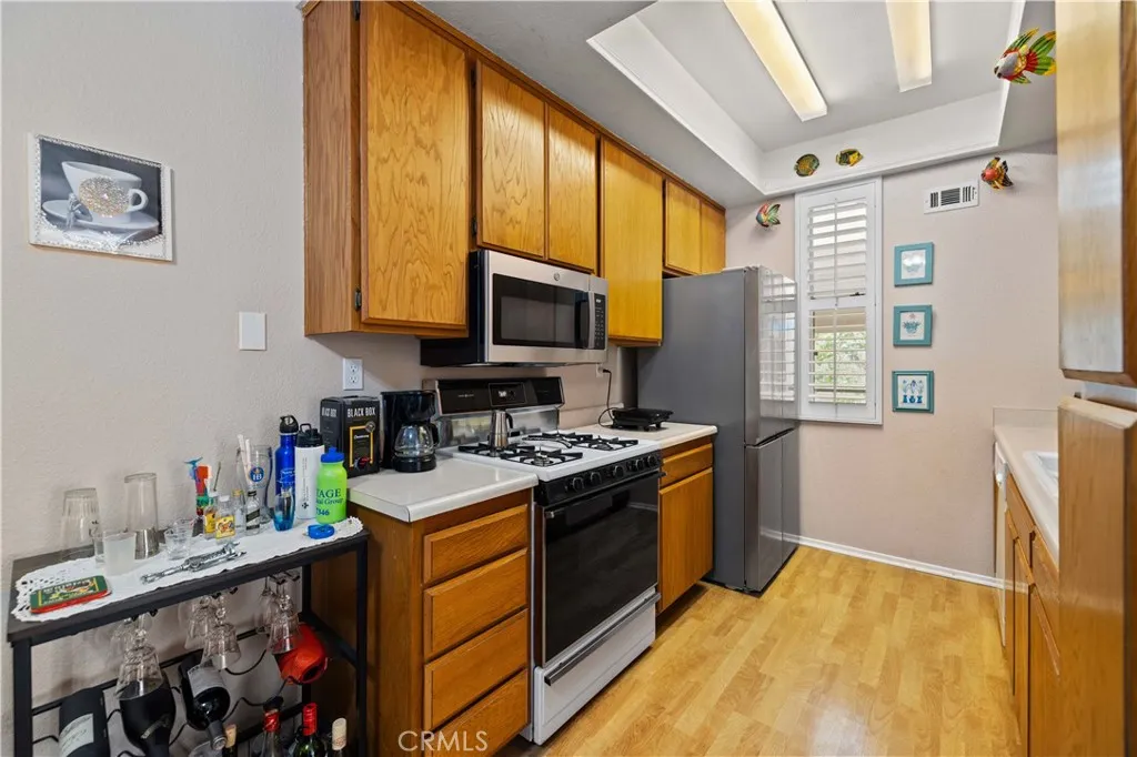 Discover the charm of this 2 bedroom, 2 bathroom upstairs condo offering comfort, privacy, and plenty of natural light. Enjoy a spacious balcony ideal for morning coffee or evening relaxation, and an open layout with a kitchen cut out design that connects seamlessly to the family room. The seller recently invested $16,000 to update the main bathroom, now featuring a walk-in shower. You'll also appreciate the in unit washer/dryer combo and a nearby 2 car garage. Set within a beautifully maintained community, you'll have access to mature shade trees, peaceful walkways, and a variety of amenities including a pool & spa, clubhouse, fitness center, tennis court, and playground that is a short walking distance from the unit. With shopping, dining, and Antelope Valley College just minutes away, this condo offers both convenience and a welcoming place to call home. Schedule a showing today and see all it has to offer!