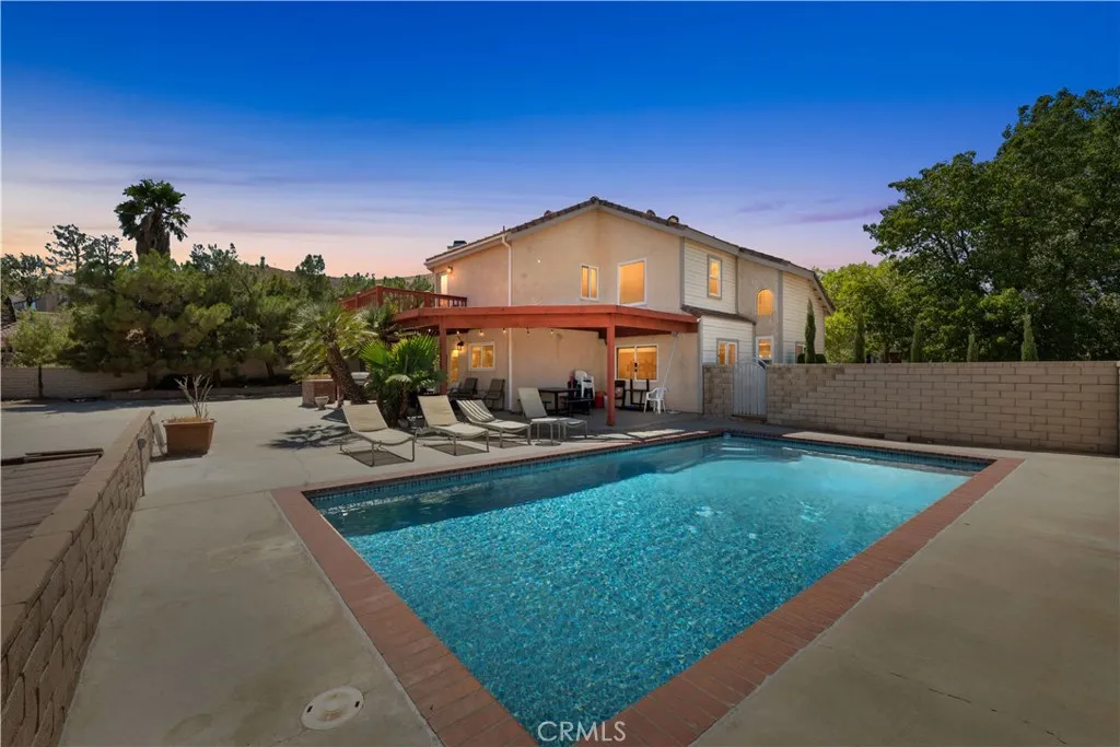 Welcome to The California Chateu Community! Nestled in a private cul-de-sac within one of West Palmdale's most desirable neighborhoods, this stunning residence offers the perfect balance of elegance, comfort, and entertainment. The home's exterior is highlighted by beautiful custom brickwork, giving it exceptional curb appeal. As you step inside, a grand staircase sets the tone for the spacious and inviting interior. The open-concept downstairs features a formal dining room, a cozy family room, and a chef's kitchen with abundant cabinetryideal for both everyday living and entertaining. The generously sized primary suite includes a private balcony, a spa-like bathroom with dual sinks, a soaking tub, separate shower, and plenty of space for true relaxation. Secondary bedrooms are equally spacious, offering comfort and flexibility for family or guests. Step outside to your own private oasis: an amazing backyard with a sparkling pool, perfect for summer gatherings and California living at its finest. This is a rare opportunity to own a home in the coveted California Chateu community of Palmdaleprivate, peaceful, and designed for the lifestyle you deserve.