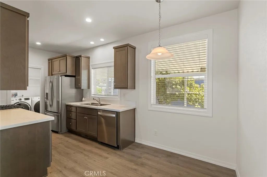 Welcome to this beautifully designed, brand-new 2025 Skyline manufactured home, offering approximately 980 square feet of modern living space in the desirable all-age Avalon Mobile Park community in Jurupa Valley. Featuring 3 bedrooms and 2 bathrooms, this thoughtfully crafted home seamlessly blends comfort, functionality, and contemporary style. Step inside to an inviting open floor plan highlighted by laminate wood-style flooring, recessed can lighting, and flat ceilings with 9-foot sidewalls, enhancing the spacious, airy feel throughout. The beautifully appointed kitchen serves as the centerpiece of the home, showcasing quartz countertops, elegant hardwood cabinetry, and brand-new stainless steel Whirlpool appliances, including a refrigerator, gas range, dishwasher, and microwave. A dedicated laundry area includes a GE washer and dryer for added convenience. The primary bedroom offers a comfortable retreat with its own well-designed bathroom and generous storage space. Two additional bedrooms provide flexibility for family, guests, a home office, or hobby space, while the secondary bathroom features modern finishes and a clean, contemporary design. Additional highlights include ample natural light, faux wood blinds, an efficient layout optimized for everyday living, ceiling fan wiring in the living room and bedrooms, and a covered carport for convenient parking. The exterior is clean and welcoming, with fresh finishes and low-maintenance surroundings. Residents of Avalon Mobile Park enjoy access to community amenities, including a clubhouse and a refreshing swimming pool