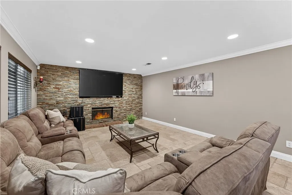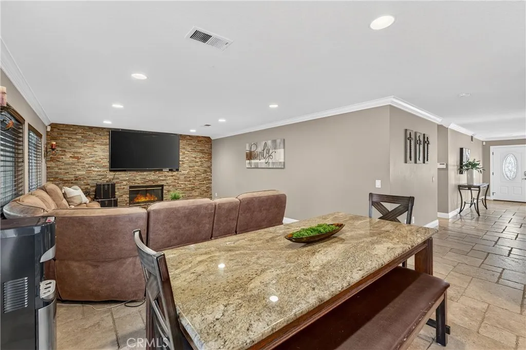 A RARE OPPORTUNITY in the highly sought-after Concord community of West Irvine! Welcome to a home where elegance meets comfort and every detail is designed for convenience and style. Perfectly positioned at the end of a private cul-de-sac, this luxury home sits on an expansive 5,745 sq ft lot and offers 5 bedrooms and 4 baths, including a MAIN FLOOR BEDROOM and bathroom ideal for guests, in-laws, multi-generational living, or a private home office. Step into a spacious and versatile layout, which includes a formal living and dining room that seamlessly blend to offer a refined space for hosting gatherings, along with a separate family room featuring a cozy fireplace with custom stone details for relaxed everyday living. At the heart of the home is the custom chefs kitchen, showcasing a large center island, double ovens, oversized built-in refrigerator and freezer, large walk-in pantry, wine fridge, and a charming custom breakfast nook. Upstairs, enjoy DUAL PRIMARY SUITES, the main suite featuring a double door entry, luxurious bath with a soaking tub, separate glass-enclosed shower, and his and hers dream walk-in closets with abundant storage. Two additional generously sized bedrooms with walk-in closets and an upstairs laundry room complete the ideal second floor. Features and upgrades include travertine flooring, oversized crown molding, dual-pane windows, Nest thermostat, dual AC systems, newer 85-gallon water heater, ample storage cabinets in the garage, alarm and exterior camera system, and solar panels for energy efficiency. This OVERSIZED BACKYARD is truly an enterta