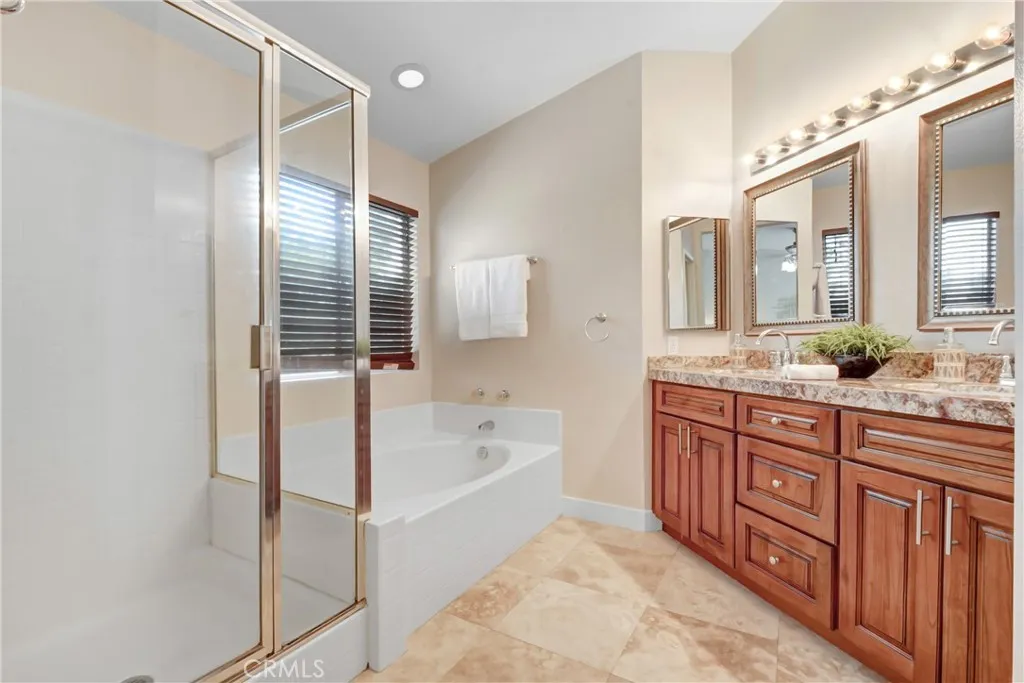 Stunning Two-Story Home in a Highly Desirable Neighborhood This beautifully maintained home offers a spacious and inviting layout, perfect for comfortable living and entertaining. The main floor features a formal living and dining room, soaring high ceilings, along with a charming remodeled kitchen that seamlessly connects to the family room, complete with a cozy fireplace. A versatile bedroom and a full bathroom with a shower provide added convenience on the first floor. Upstairs, youll find three additional bedrooms and a generous master suite. The master bedroom boasts ample space, a private en-suite with a separate shower and soaking tub and serene backyard views. Step outside to your private area with patio cover perfect for relaxing and entertaining. The property also features a three-car garage. Nestled in a prime location close to top-rated schools, scenic walking trails, shopping, and major freeways, this home offers breathtaking mountain views and is truly move-in ready. Make this beautiful home yours and enjoy the summer in style! NO HOA!