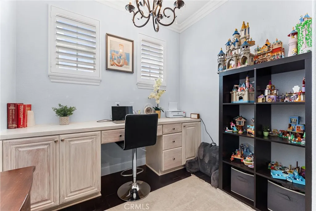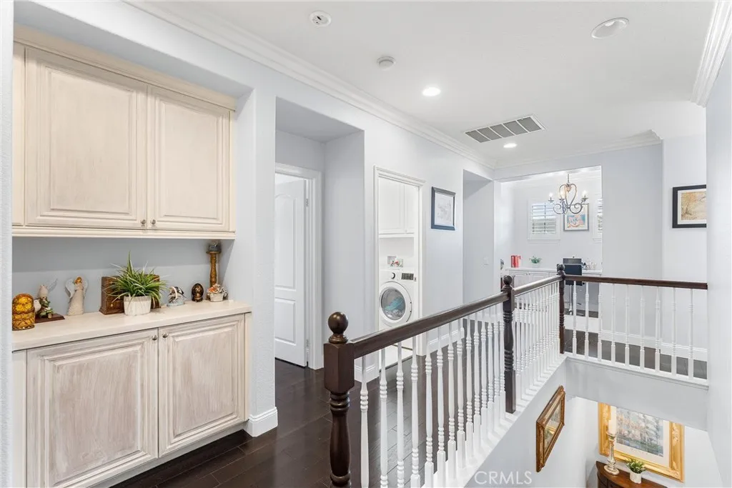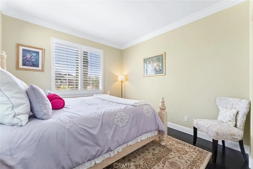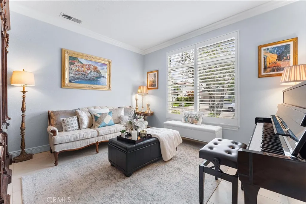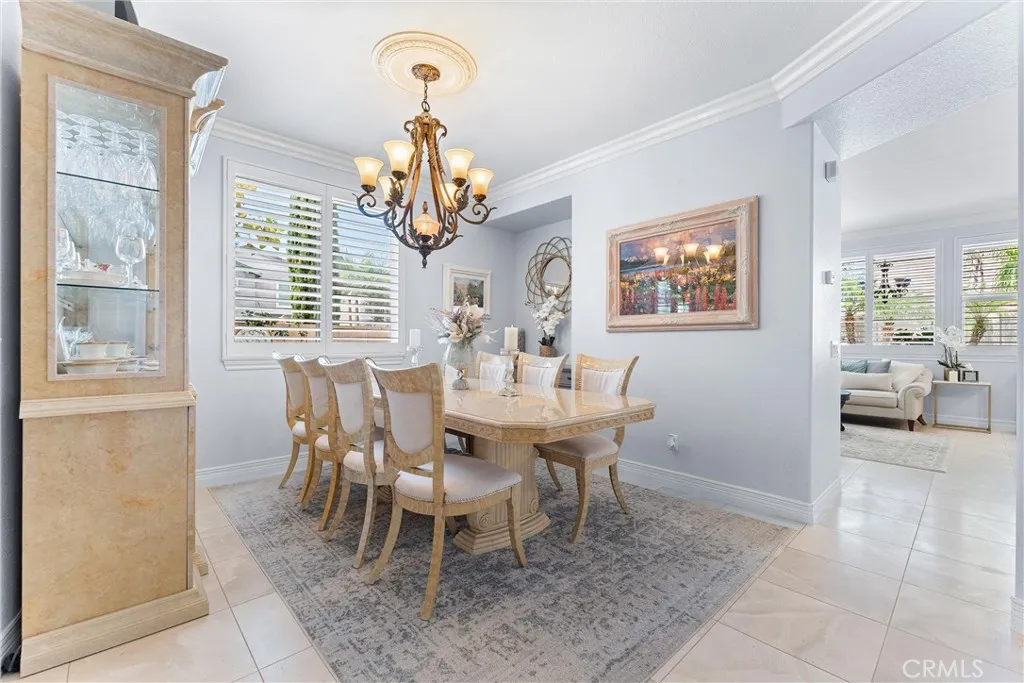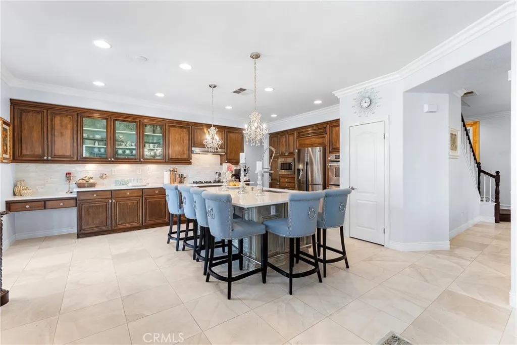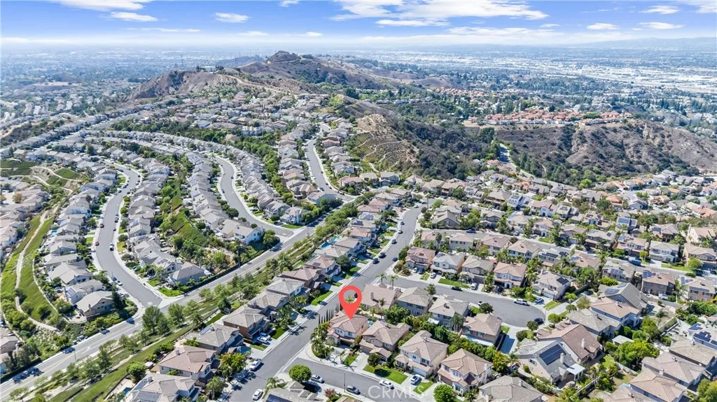Huge price reduction! Price to sell! Timeless, romantic, and immaculate, this European influenced estate in Serrano Heights is a dream come true! Built in 2003 with 9' high ceilings. No expense was spared on creating this stunning Mediterranean-style home. Towering cypress trees, numerous palms, and blooming flowers will greet you happily upon your arrival. As you walk to the front door, the smooth stucco walls, the handsome stone frames around the doors and windows, and the keystones with a carved shell motif give you a sense of nostalgia. Inside, a charming foyer, a cozy living room, and a formal dining room welcome you! Open to the family room with an elegant fireplace, the kitchen is a chef's dream. It boasts a central island with antique finish cabinetry, glass paneled cabinet doors, stainless steel appliances, under-cabinet lights, 3 cm quartz countertops, & full stone/glass backsplash. Next to the kitchen, a good sized den can be turned into a bedroom easily. Fully upgraded, the bath downstairs features a classic vanity, travertine walls, & a travertine shower with a custom soap box. Upstairs, the primary suite showcases a covered balcony with travertine tile floor-perfect for you to unwind and enjoy the spectacular sunset views after work! The primary bath's highlights include granite countertops, a soaking tub, a granite walk-in shower, dual vanities, a makeup vanity, & a huge walk-in closet with a closet organizer. 2 secondary bedrooms with walk-in closets share a jack-and-jill bath which also has antique finish cabinets, 3 cm quartz countertop, & stone mosaic bac