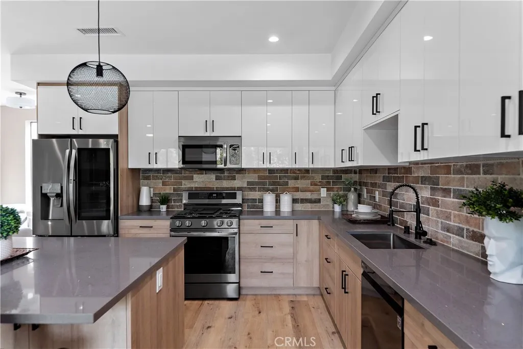 Welcome to this beautifully appointed townhome in the heart of Valley Village, where modern design meets everyday convenience. Featuring 3 spacious bedrooms, 3.5 bathrooms, and a dedicated office, this residence offers the ideal balance of comfort, style, and functionality. An open, light-filled floor plan showcases contemporary finishes throughout, with the gourmet kitchen serving as the centerpiece. It features a large island, quartz countertops, custom cabinetry, and premium stainless steel appliances. Perfect for entertaining or casual dining, the kitchen seamlessly connects to the expansive living area, which opens onto a private balcony overlooking the front of the property - an inviting spot to relax and unwind. Additional highlights include a direct-access 2-car garage, a charming front yard, and the convenience of an included washer, dryer, and kitchen appliances. Set on a picturesque, tree-lined street, this residence is within walking distance to shops and dining, with excellent access to the 170, 405, and 101 freeways. Just minutes from Universal CityWalk and major studios, this home delivers both a prime location and a refined lifestyle.