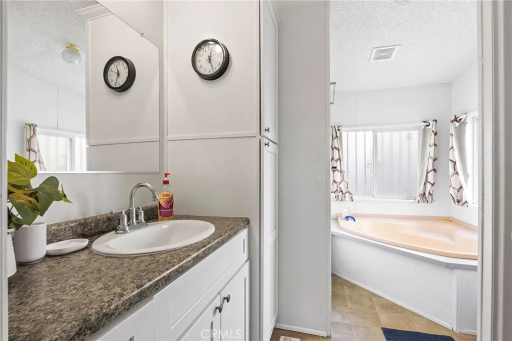 This 3 bed 2 bath home features freshly updated bathrooms and a modern kitchen with newly laid laminate floors, making it truly move-in ready for your family. The desirable CORNER lot location provides enhanced privacy. While the fully fenced property offers security and defined outdoor space for pets. Parking is abundant with a 2 car tandem carport plus an additional 3rd parking spot in the back. This community provides convenient access to local shopping, dining, and entertainment, with easy connections to the I-10 and I-215 freeways for commuting throughout San Bernardino and Riverside counties. The community amenities enhance your lifestyle with a refreshing swimming pool perfect for those warm Southern California days, a welcoming clubhouse for gatherings, a relaxing spa, and a convenient on-site laundromat for those larger laundering needs. Youll enjoy the areas proximity to regional parks, hiking trails, and recreational opportunities, all while benefiting from more affordable living compared to coastal California. This home offers the ideal combination of value, comfort, and community in a growing area. Dont miss this opportunity to make this well-maintained, move-in ready home your own!