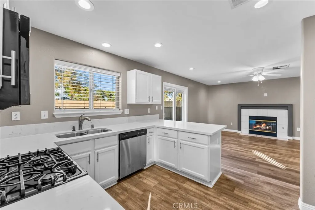 Welcome to this charming two-story single-family home offering 1,748 sq ft of comfortable living space on a generous 7,405 sq ft lot. Featuring an attached 2-car garage, this beautifully maintained residence combines modern upgrades with timeless appeal. Upon entry, you're greeted by an inviting living room highlighted by a cozy fireplace, wood-style flooring, recessed lighting, ceiling fans, and high ceilings that create an airy, open atmosphere. The open floor plan seamlessly connects the living area to the dining and kitchen spaces, perfect for both entertaining and everyday living. The kitchen boasts stainless steel appliances, recessed lighting, and plenty of cabinetry for storage. A stylish staircase leads to the second floor, where you'll find spacious bedrooms with mirrored closet doors. The main bedroom offers a relaxing retreat complete with a dual-sink vanity and ample closet space. With its combination of space, comfort, and modern design, this home is ready to welcome its next owners.