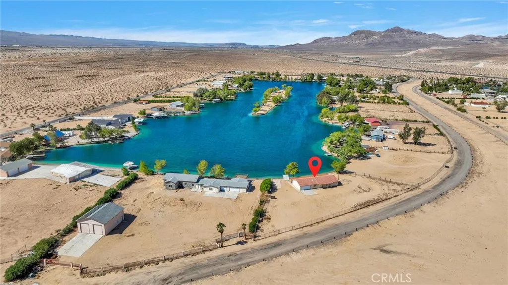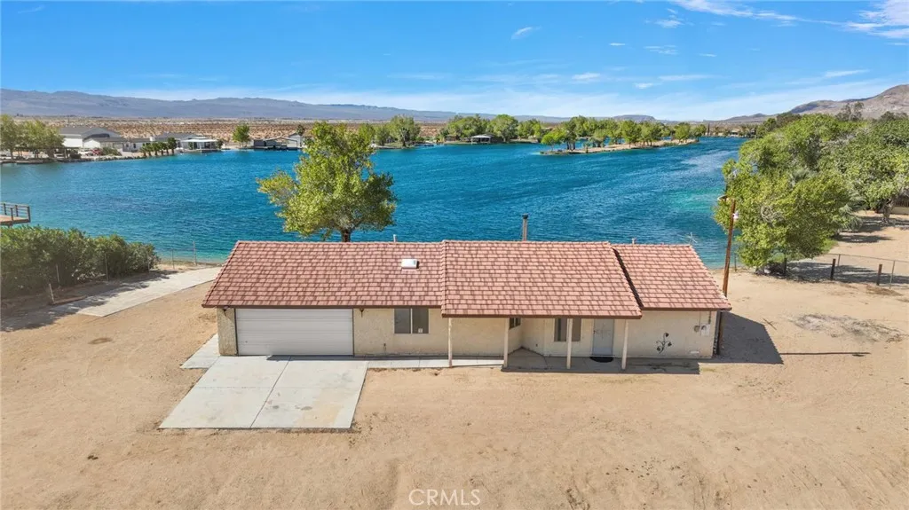 Lakefront Living in Crystal Lakes Private Community! Welcome to this charming 3-bedroom, 2-bath home perfectly situated on just under an acre in the highly desirable Crystal Lakes community of Newberry Springs. Built in 1991 and offering 1,391 sq. ft. of comfortable living space, this home combines privacy, convenience, and stunning lakefront views. Inside, youll find a spacious living area featuring a free-standing wood-burning stove, perfect for cozy evenings. The tile roof adds long-lasting durability, while the attached 2-car garage provides convenience and storage. Outdoors, enjoy a full-length covered patio overlooking the waterideal for entertaining or simply relaxing. The fenced property also includes its very own private dock, and boat launch giving you direct access to the lake, for fishing , paddle boarding, kayaking, jet skiing, boating in the summer months , during fall and winter months you can enjoy the open desert for off road exploring and the beautiful desert sunsets . Located off the 15 Fwy going to Las Vegas .