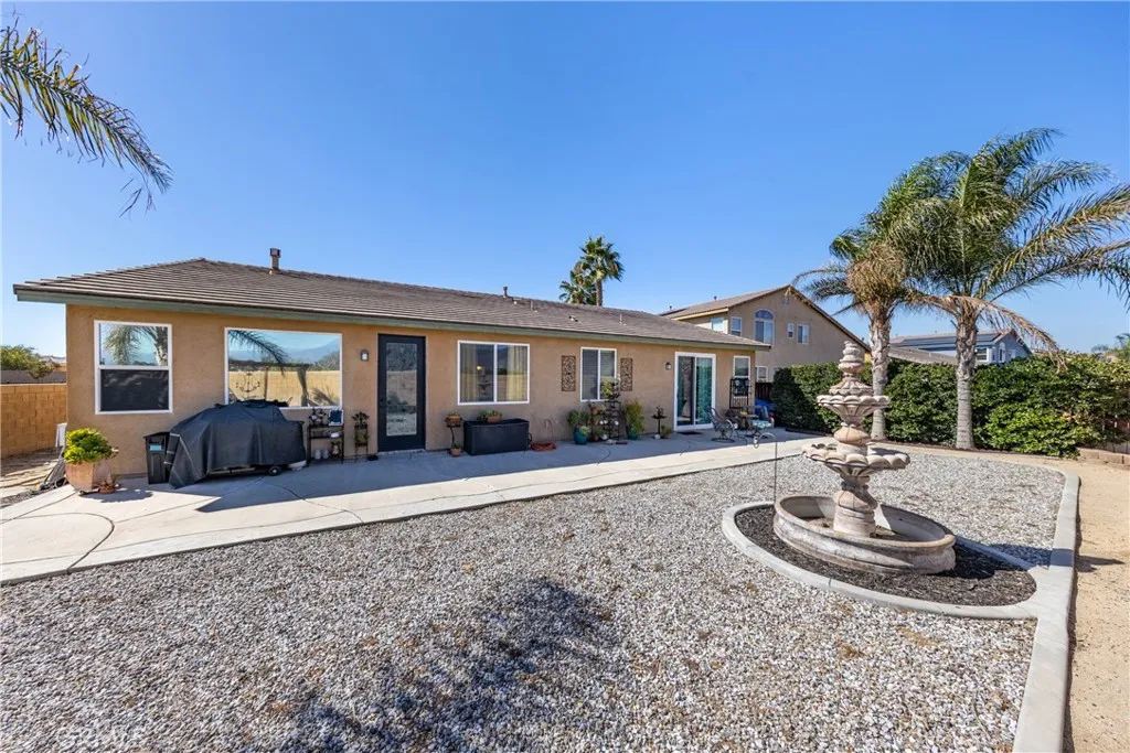 Ideal for Multi-Generational Living | Model-Like Single Story Home **New Improved Pricing!** Welcome to this beautifully upgraded, model-like single-story home offering 3 bedrooms plus office or potential 4th bedroom, 2 baths, and 2,563 sq. ft. of elegant living space. Designed with flexibility in mind, this floor plan is ideal for multi-generational living featuring both a Junior Suite and a Primary Suite situated on opposite ends of the home for maximum privacy. The Junior Suite, located at the front, includes its own bedroom, bath, and private entryaccessible from either the exterior or the main foyermaking it perfect for in-laws, teens, guests, or potential rental income. Step inside the spacious entryway that opens to a formal living and dining area accented with crown molding. To your left, a versatile den/office offers the potential for a fourth bedroom. The homes gourmet kitchen is an entertainers dreamfeaturing granite countertops, a large island with eat-up bar, double convection ovens, a separate gas cooktop, under-cabinet lighting, and ample cabinet space, breakfast nook. The kitchen flows seamlessly into the great room, where youll find a cozy fireplace, built-in shelving, and large windows that fill the space with natural light and frame stunning mountain views. Enjoy tile flooring in all high-traffic areas and carpet in the formal rooms and bedrooms. Both the family room and primary suite offer direct access to the backyard, where a full-length patio slab, block wall with wood fencing, an outdoor fireplace, and a decorative fountain create the perfect setti