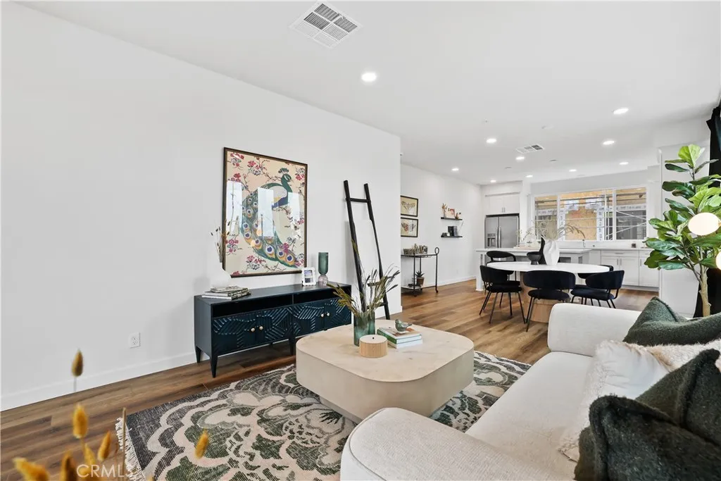 PARK VIEW QUIET LOCATION! New construction townhome in a gated community by Bonanni Development in Stanton. This popular Plan 3 townhome has 3 bedrooms and 3.5 bathrooms, with one bedroom and full bathroom on the FIRST level. Plus a two car, side by side garage. Everyone loves the great room design with a wonderful private deck. Beautiful kitchen with large island, quartz countertops and stainless steel appliances. Built with state of the art technology, high speed wiring throughout, plus new appliances, cabinets and flooring. This gated community will have three unique parks for homeowners to enjoy. SOLAR PANELS INCLUDED in price. Located close to Rodeo39 and the 22 Freeway off Beach Blvd. pictures are of model home