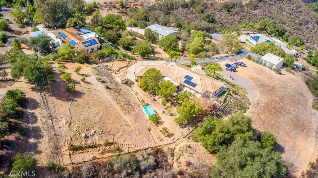 Beautiful single-story custom home on nearly 4.5 acres with stunning mountain and valley views! Approx. 2,740 sq. ft. with 3 beds, 2.5 baths, vaulted ceilings, and open floor plan. Spacious kitchen with island and large dining area. Primary suite offers patio access and spa-like bath. Enjoy peaceful outdoor living surrounded by mature fruit and macadamia trees. 3-car garage plus separate RV garage at the base of the property and PAID-OFF solar! Private, serene setting just minutes from downtown Fallbrook!