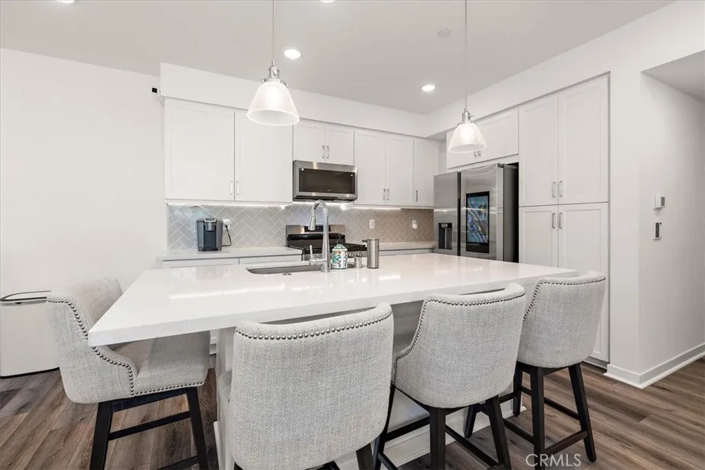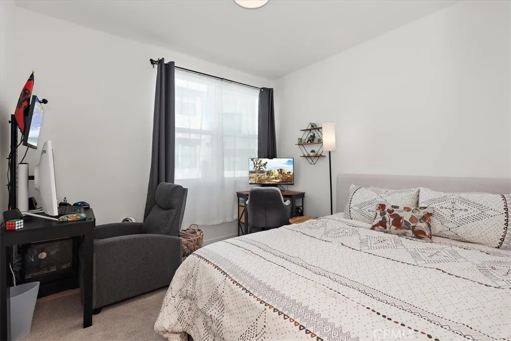 Price Improved to $510,000 Experience modern living at its finest in this impeccable 2022-built townhome, perfectly situated in The Resort of Rancho Cucamonga. This 1,002 sq ft corner unit is designed for a stylish and convenient lifestyle. Step inside from your spacious tandem garage, featuring two extra storage areas and EV charging for both standard and high-speed vehicles. Upstairs, the main living area is an entertainer's dream. The dining and living area is open and spacious enough for you to land and enjoy quality time with loved ones without feeling crowded. A large island with wrap-around counter space seamlessly connects the kitchen and living room. The kitchen boasts nearly new appliances, ample storage, and a pantry, making it truly move-in ready. From your cozy, north east-facing balcony, enjoy fresh morning air with stunning sunrise views over the San Bernardino Mountains. The primary suite offers a true sanctuary, complete with a generous walk-in closet and a private ensuite bathroom. The second bedroom is perfect for a guest room or home office, conveniently located next to the common bathroom and laundry closet. Live the resort lifestyle with exclusive access to top-tier amenities, all just a short walk away. From pools, a spa, and a gym to a yoga studio and a vibrant community center, everything you need to thrive is right outside your door.
