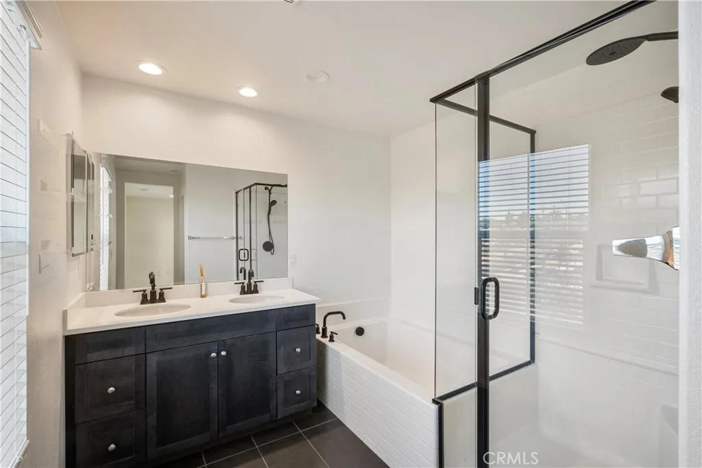 POOL | DOWNSTAIRS BEDROOM | PAID OFF SOLAR | Discover modern luxury and comfort in this beautifully upgraded residence located in the desirable Madeira community of Riverside. Featuring over $130,000 in enhancements, this newer construction home blends sophisticated design with everyday functionality. Upon entry, youre greeted by a welcoming foyer that leads past a conveniently located downstairs bedroom and full bath, ideal for guests or multi-generational living. The open concept great room serves as the heart of the home, showcasing a custom entertainment area with built-in shelving and a contemporary fireplace that anchors the space. The adjoining kitchen features quartz countertops, a central island that provides additional prep space, stainless steel appliances, and abundant cabinet space, creating an ideal setting for both entertaining and family gatherings. Luxury vinyl plank flooring extends throughout the lower level, enhancing the modern feel and durability of the home. A large double sliding glass door opens directly to the resort-style backyard, seamlessly connecting indoor and outdoor living. The backyard is an entertainers dream, highlighted by a custom modern pool, a large sunken fire pit with built-in seating, synthetic turf, and low-maintenance landscaping in both the front and back yards. The extended driveway adds convenience and curb appeal. Upstairs, the spacious primary suite offers a relaxing retreat with a spa-inspired bathroom featuring dual vanities, a soaking tub, a separate shower, and a generous walk-in closet. Additional bedrooms and a versati