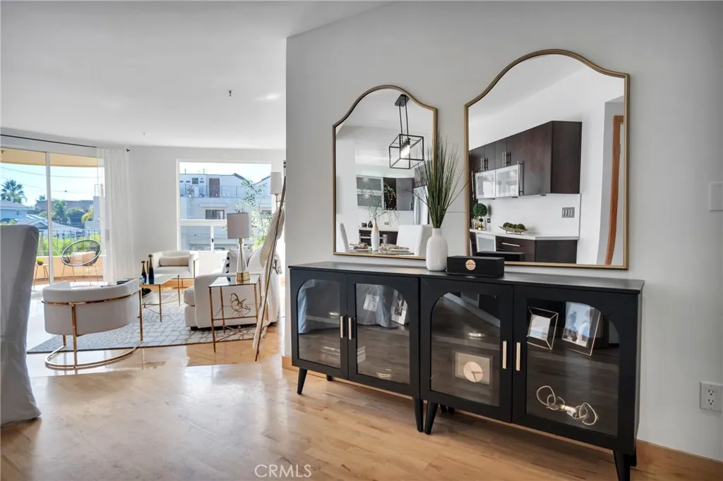 Sophisticated Coastal Living in the Iconic Venice Renaissance Building! Welcome to 245 Main Street Unit 208 in Venice Beach and experience the perfect blend of architectural pedigree, modern design, and beachside tranquility in this beautifully updated residence within the renowned Venice Renaissance Building, designed by Johannes Van Tilburg & Partners. Every detail has been thoughtfully curated, from the sleek, high-end finishes to the seamless flow of natural light that fills the space.The inviting living area centers around a sophisticated fireplace, creating an elegant focal point and a warm ambiance thats perfect for relaxing evenings or intimate gatherings. From here, step out onto your private balcony to enjoy coastal breezes and al fresco moments. The gourmet kitchen is a chefs delight, featuring Silestone countertops, stainless steel appliances, and premium fixtures. Built-in lighting along the kitchen and bar area adds a touch of elegance and warmth, highlighting the modern design while creating the perfect atmosphere for entertaining.Both bathrooms have been tastefully renovated with contemporary touches and quality craftsmanship. The primary suite is a serene retreat, complete with its own private balcony and a spa-inspired bathroom featuring dual sinks and a large, elegantly tiled walk-in shower.The guest bedroom doubles as a multifunctional space, showcasing custom-built storage and an Italian-designed queen-size Murphy bed/sofa by Resource Furnitureideal for hosting guests without sacrificing space or style.Additional highlights include in-unit laundry, two