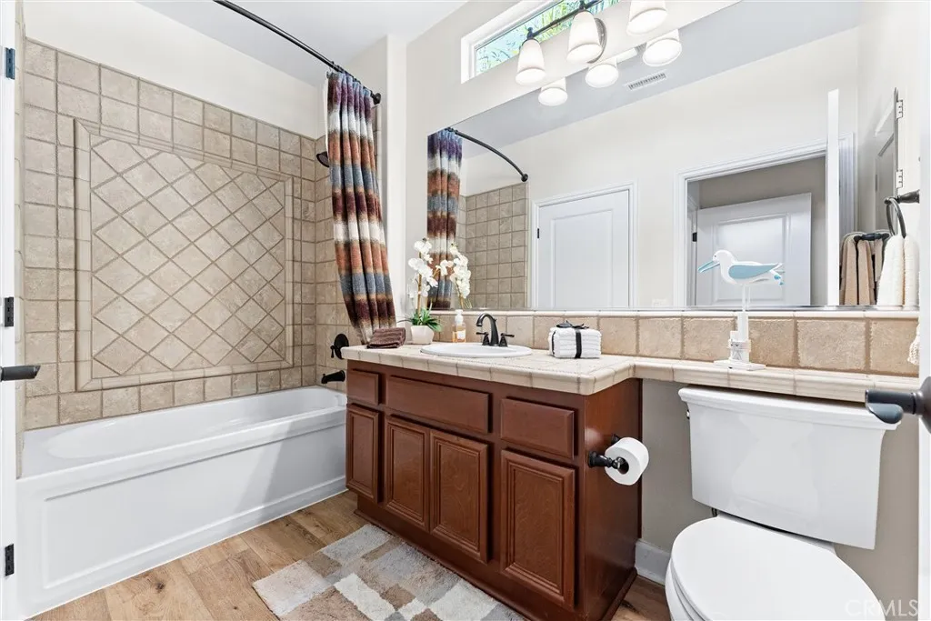 Welcome to 24217 Fawnskin, where hillside serenity meets turnkey luxury in this fully furnished Southern California gem. Backing up to open space with no rear neighbor and sweeping views, this private retreat is the perfect blend of modern comfort, designer finishes, and easy living. The charming craftsman-style exterior draws you in with its stone-accented columns, cozy covered porch, and inviting curb appealmade even better by the HOA-maintained front yard landscaping (yes, one less thing on your to-do list). Step inside and youre immediately greeted by a warm, open-concept layout designed to impress. Rich wood flooring flows throughout the space, anchored by a stunning stone fireplace and elevated with high ceilings, crown molding, and stylish light fixtures. The fully equipped kitchen is a chefs dream with deep wood cabinetry, quartz countertops, stainless steel appliances, and a large island perfect for entertaining. Just off the dining area, massive windows and glass doors frame your unobstructed backyard viewsand create seamless indoor-outdoor living. Out back, it gets even better. The private backyard oasis features a built-in spa with a cascading waterfall, a covered patio with ceiling fan, a mounted outdoor TV, and comfortable lounge space. All of it set against a tranquil hillside with no one looking in, just you and the sound of bubbling water under the palm trees. And heres the best partthis home is being sold fully furnished. From the plush sectional to the chic dining setup, everything is already in place. Just bring your suitcase and settle right in. Whether
