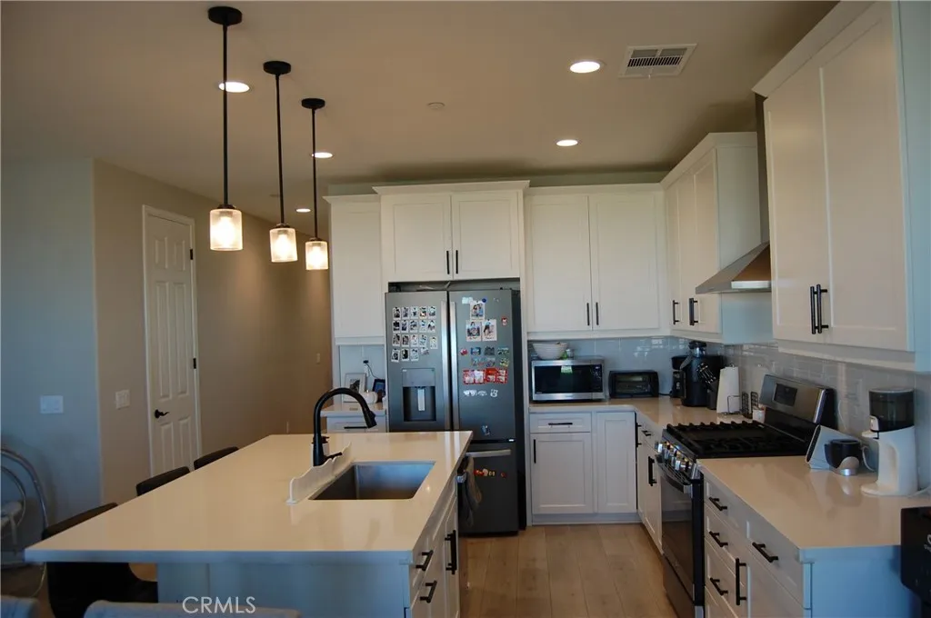 Step into style, comfort, functionality and commuter friendly property. This beautifully designed highly upgraded property was built in 2023, features an inviting entry with a open-concept floor-plan that combines the kitchen, living room and dining areas to maximize the interior space. This luxurious chef inspired kitchen features a large kitchen Island, white shaker cabinets, quartz countertop and matte black finishes that offers luxuries contrast. The main floor offers a bedroom and a full bathroom, as you make your way upstairs the property features a huge impressive loft. The primary suit serves as a private retreat with a huge walk in closet spa-like shower, dual vanity sinks. The laundry room is conveniently located in the second floor the seller installed additional cabinets and a utility sink. As we make our way to the back yard you will notice the property has block walls for privacy, the yard also features fully landscaped yard that includes a cover patio with ceiling fans and lighting, artificial turf grass and low maintenance landscaping, great for entertaining.