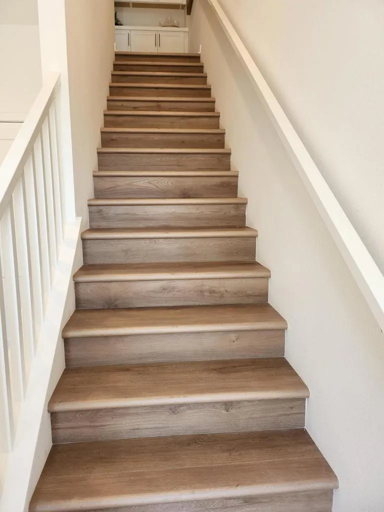Discover contemporary living at its finest in this impeccable, three-story home, which showcases an open floor plan with 9-ft. ceilings and luxury vinyl plank flooring.Upstairs, the kitchen boasts a walk-in pantry, stylish island, Shaker-style cabinets, quartz countertops and top-of-the-line Wolf and Cove stainless steel appliances. Unwind in the third-floor primary bedroom, which features plush carpeting, a walk-in closet and connecting bath that offers cultured marble countertops, a walk-in shower and ceramic tile flooring. Enjoy outdoor living on the balcony. Additional highlights include a solar energy system, LED lighting, electric charging station and smart thermostat. Live effortlessly in this all-electric haven.