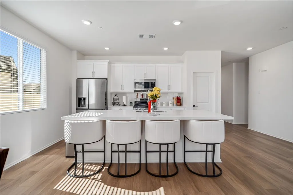 2025 Built Home in Pacific Lily | Solar, High Ceilings & $20,000 Grant Opportunity This property qualifies for a $20,000 grant from City National Bank, which can be applied toward the buyer's down payment or closing costs, a rare opportunity for added affordability. Welcome to 45628 Rachel Avenue, a beautifully upgraded 2025-built single-story home located in the desirable Pacific Lily community of Lancaster. Offering 4 spacious bedrooms and 2 full bathrooms, this move-in-ready residence combines modern design, energy efficiency, and functional living. Step inside to an open floor plan featuring soaring ceilings, abundant natural light, and laminate flooring throughout the main living areas, with carpet in all bedrooms. The kitchen features quartz countertops, stainless steel appliances (included), recessed lighting, a large walk-in pantry, and a generous, large center island, ideal for both everyday living and entertaining. The private primary suite offers a large walk-in closet, dual-sink quartz vanity, and a spacious walk-in shower, creating a comfortable and functional retreat. Additional highlights include a refrigerator, a washer, and a dryer included, an indoor laundry room with laminate flooring, an energy-efficient tankless water heater, a built-in fire sprinkler system, a solar lease for energy efficiency, a direct-access 2-car garage, and a large backyard ready for customization, entertaining, or future landscaping. Enjoy the benefit of low HOA dues, fully paid through March 2027, then approximately $58.63 per month thereafter, offering strong value in a newer-co