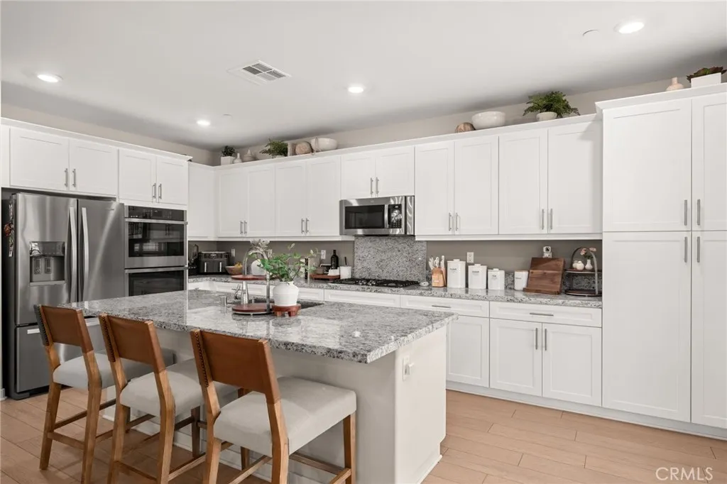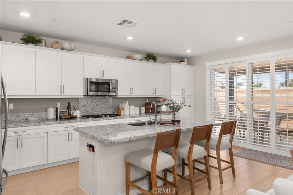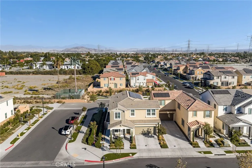 Set in Ontarios desirable Shady Tree-Country Lane community, this newer Lennar home combines open living spaces with a layout that simply makes sense. Perfectly positioned on a corner lot, it offers an added sense of privacy and space with no immediate neighbor on one side and extra room to breathe both inside and out. From the moment you step inside, youll notice how natural it feels with light pouring in through wide windows, clean lines, and a seamless connection between the kitchen, dining, and living areas. The kitchen is stylish and practical with smooth stone counters, warm cabinetry, and plenty of space to cook, create, and gather. Just off the main living space, a downstairs bedroom and full bath make multigenerational living, hosting guests, or working from home easy. Upstairs, four additional bedrooms provide plenty of room for everyone. The primary suite feels calm and intentional, with a spacious walk-in closet and a private bathroom that offers double sinks and a relaxing retreat from the day. A junior suite with its own bath and two additional bedrooms create balance for family or guests, and the upstairs laundry room keeps daily life simple. Out back, the yard is ready for low-maintenance living: thoughtfully landscaped with turf and hardscape so you can spend less time working and more time enjoying. The home also includes free and clear solar, helping keep energy costs low year-round. Beyond your door, the Shady TreeCountry Lane community brings people together. Here, weekends often mean afternoons at the pool, kids playing on the playground, or casual get