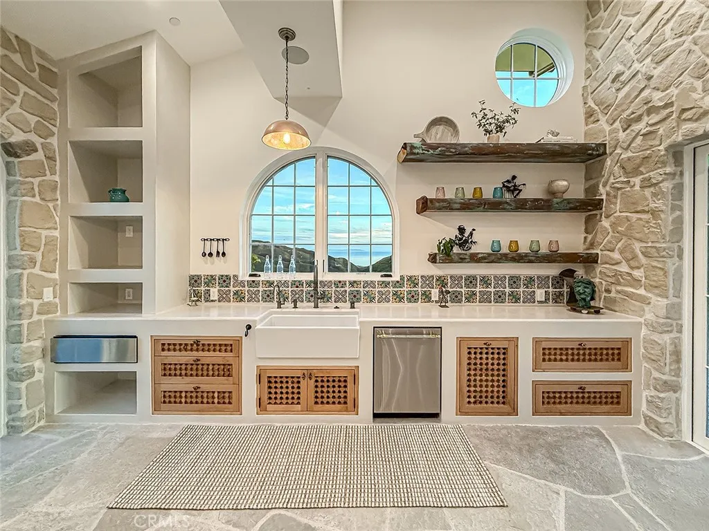 Welcome to Mintcello - a private Malibu Masterpiece by Apel Design Studio. Perched above the Pacific on 4.5 secluded acres, Mintcello is a breathtaking coastal estate where Italian romance meets Malibu serenity. Designed and crafted by Apel Design Studio, this residence is more than a home its a livable work of art, offering an unparalleled connection between architecture, nature, and light. From the moment you arrive along the 650-foot private driveway, illuminated by solar lights and framed by mature pepper trees, Mintcello unfolds like a private sanctuary. A custom-built steel gate opens to reveal panoramic views of the Pacific and rolling coastal hills a setting that feels discovered, not constructed. Perfectly positioned, the estate offers a rare balance of privacy and accessibility just 15 minutes to Point Dumes beaches and 15 minutes to the 101 Freeway, providing effortless access to the best of Malibu and beyond. Every inch of Mintcello has been meticulously handcrafted by artisans mosaic inlays, carved fountains, sculptural lighting, and custom copper shelving highlight the devotion to detail and design. Natural materials and hand-finished surfaces reflect the timeless beauty of the countryside while embracing the stillness of the California coast. Spanning 4,013 sq ft of interior living space and an additional 460 sq ft two-car garage, the homes thoughtful floor plan frames every moment of the day from sunrise over the hills to glowing coastal sunsets. A wraparound patio and garden terraces invite connection and contemplation: read beneath the pepper trees, s