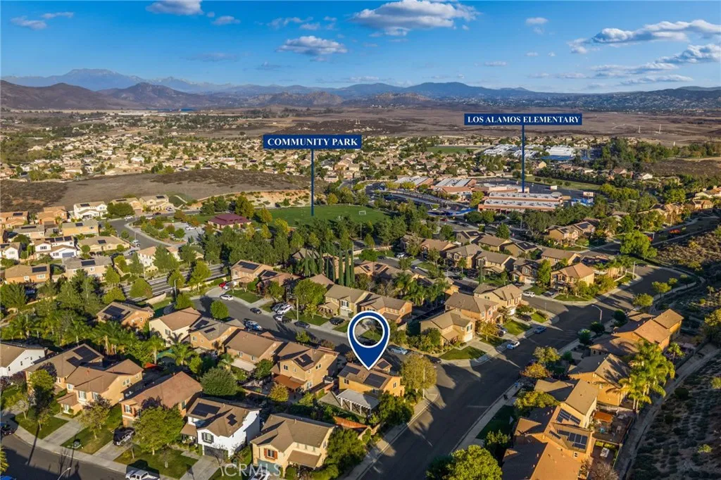 RANCHO BELLA VISTA GEM! CUSTOM UPGRADES & SOLAR! Exceptional single-family home located on a quiet cul-de-sac in the highly desirable Rancho Bella Vista community. Including a short walk to the top-rated Temecula Valley elementary school, Alamos Elementary School! This spacious 3-bedroom, 2.5-bathroom home features a versatile upstairs loft and has been extensively upgraded. Interior features include upgraded flooring, custom can lights, and a main floor with an open-concept kitchen. The kitchen boasts Quartz countertops, a custom backsplash, black granite sink, and stainless steel appliances. The living room includes a custom built-in media center with in-ceiling speakers. The Primary Suite features a spectacular custom master closet and maple built-in shelving. Secondary bedrooms also have custom closets. The exterior has remodeled landscaping with a covered Alumawood patio, fruit trees, and lush grass. The home is equipped with an energy-efficient solar system (huge savings!). Additional features include an updated 1/2 bath. Conveniently located near parks, shopping, and I-15 commuter routes.