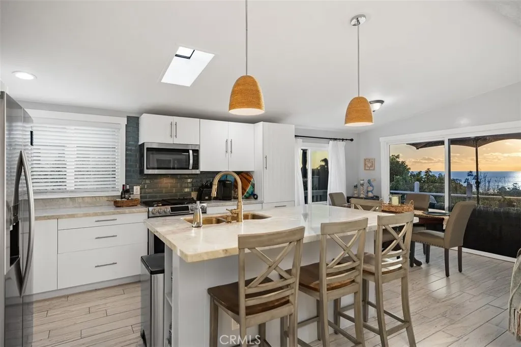 COASTAL LIVING WITH OCEAN VIEWS IN LAGUNA BEACH! Set in the heart of Laguna Terrace, this inviting beach home offers sweeping ocean and Catalina Island views from its expansive outdoor deckperfect for soaking in sunsets or gathering with guests. Inside, the thoughtful layout includes a bright open concept kitchen, dining room, living room and 2nd bedroom all with ocean views! There is a separate laundry room, and a peaceful primary suite with ensuite bathroom with soaking tub and spacious walk-in shower. The walk-in closet is large enough to double as a creative space, offering versatility for your lifestyle. On the exterior you will find a new roof, exterior paint job and two parking spaces! This home's location offers effortless access to beaches, restaurants, the Montage Resort, and the local trolley, this home provides a rare opportunity to enjoy the coastal experience at a more accessible entry point. In this community, the Laguna Terrace residents enjoy resort-style amenities including a pool and hot tub, fitness center, and clubhouse equipped with a full kitchen and an internet cafe. This community offers a rare opportunity to embrace the Laguna Beach lifestyle at a fraction of the typical price. The monthly land leasecurrently $5,250*allows you to enjoy a premier Laguna Beach address without the high cost of land ownership. *Annual increase of 3% or the CPI (whichever is greater) applies. Home Serial #'s:54720220AZ/BZ.