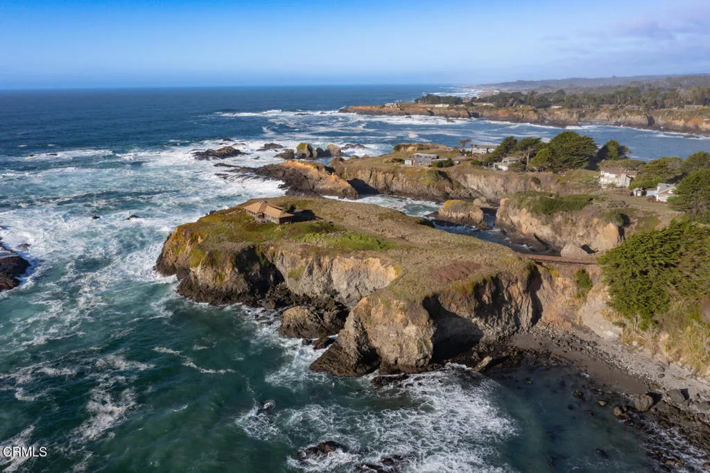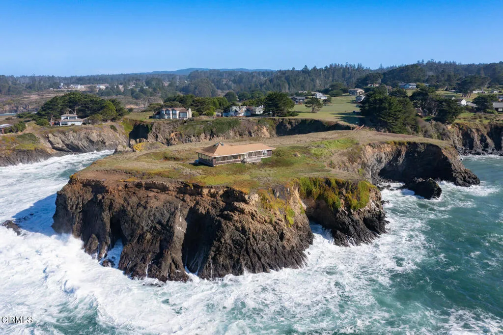 The Island House in Caspar, California. Likely the most rare and unique coastal home ever developed on the Mendocino Coast. The property is surrounded by the Sea on a Bluff above the water and connected to the mainland by an Iron Bridge. Built in circa 2018 this 1,709+- sqft, 1 bed, 2 bath coastal development marvel has gleaned the eye of sailors and captains since its inception. The residence is anchored in bedrock and offers a spacious wine cellar/basement and all of the modern high-end luxury touches that one would expect when surrounded by glass, rock and water. Rarely can one look back towards the safety of land from their home and see the radiant beam of a light house. This is a once in a lifetime opportunity to own and live on your own California Island!