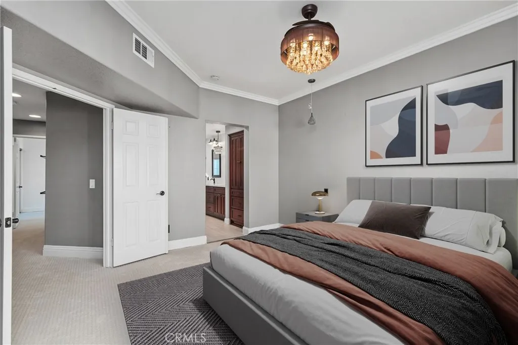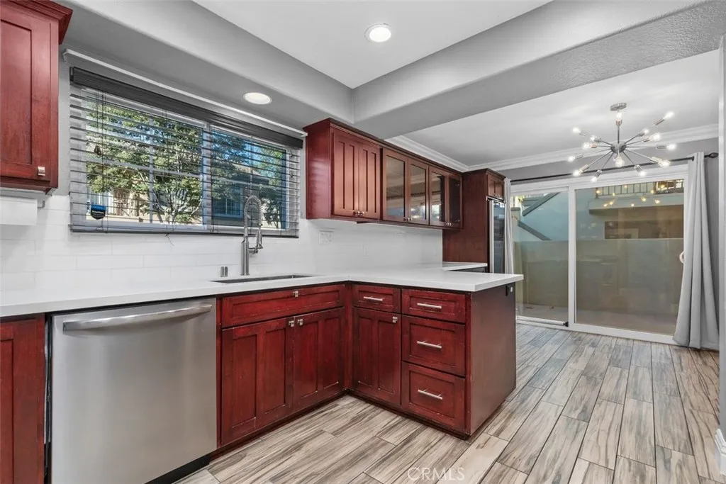 Welcome to the Laurelwood Community, where comfort, style, and a touch of finally, a place that checks all the boxes come together. This beautifully upgraded 3-bedroom, 3-bathroom end-unit townhome offers 1,615 square feet of smartly designed living space, starting with the wood-look tile flooring that spans the entire first level. The kitchen delivers on both form and function with quartz counters, ample cabinetry, and stainless steel appliancesbecause yes, you can have good taste and good storage at the same time. A main-floor bedroom and full bath offer ideal flexibility for guests, in-laws, or that home office you swear youre going to use. Upstairs, youll find two spacious en suite bedrooms, including a remodeled primary suite featuring dual sinks, a cedar-lined walk-in closet, and a walk-in shower that basically begs you to linger. Fresh brand-new carpet keeps the second floor feeling plush, while the enclosed patio out back is perfect for relaxing or squeezing in some outdoor time without leaving home. Located at the quiet rear portion of the community with ample guest parking, this home also enjoys access to two sparkling community pools and spas, because California living just hits different with options. Top it off with a 2-car attached garage, inside laundry room and walk-ability to restaurants, grocery stores, and other destinations and youve got a turnkey home that blends convenience, comfort, and elevated style in all the right ways.